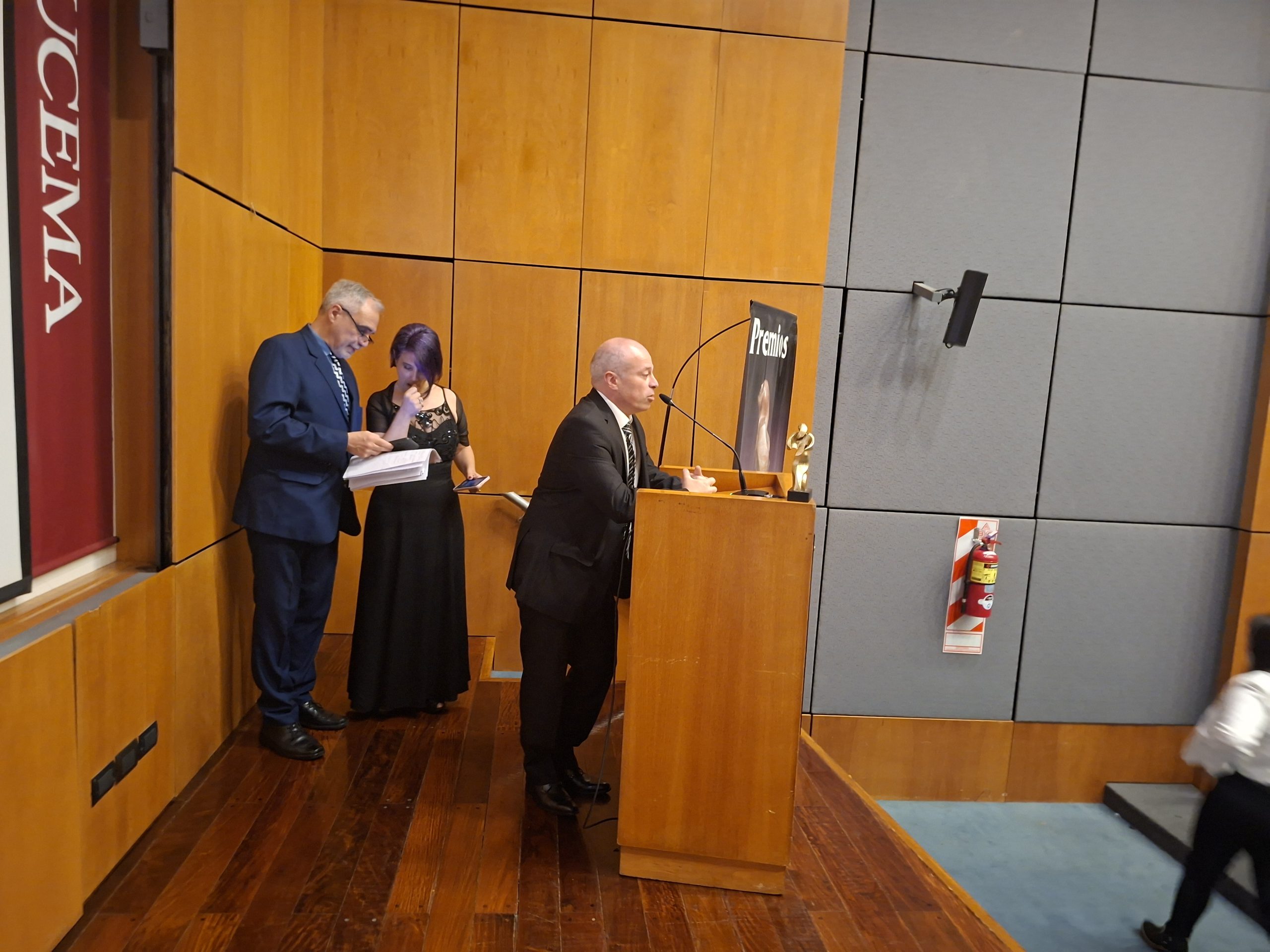 Walter Gorbak, uno de los premiados, en el micrófono.
