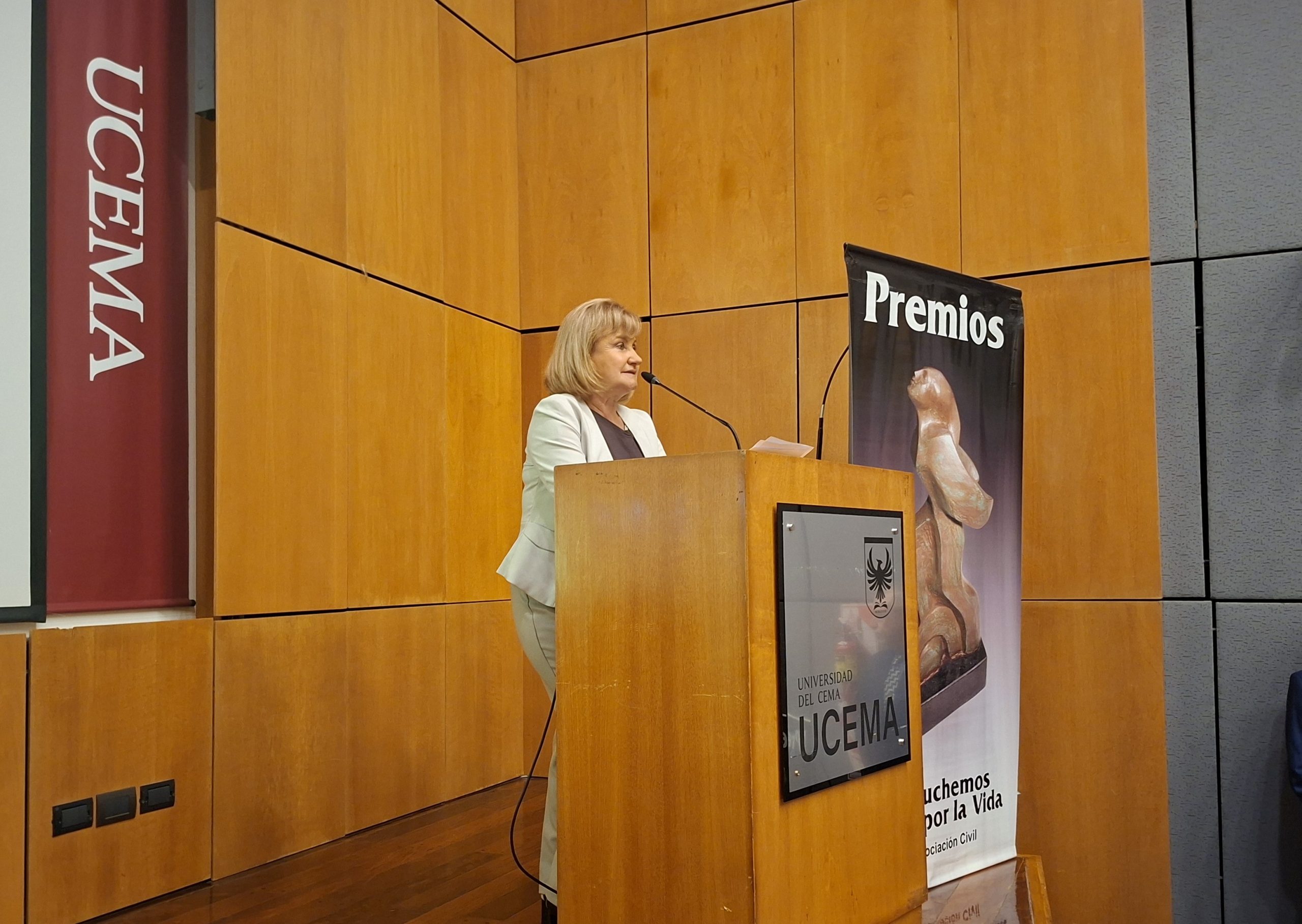 María Cristina Isoba, Carlos Clériici y Alejandra Zúccoli en el auditorio de la UCEMA.