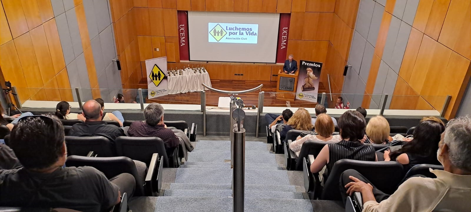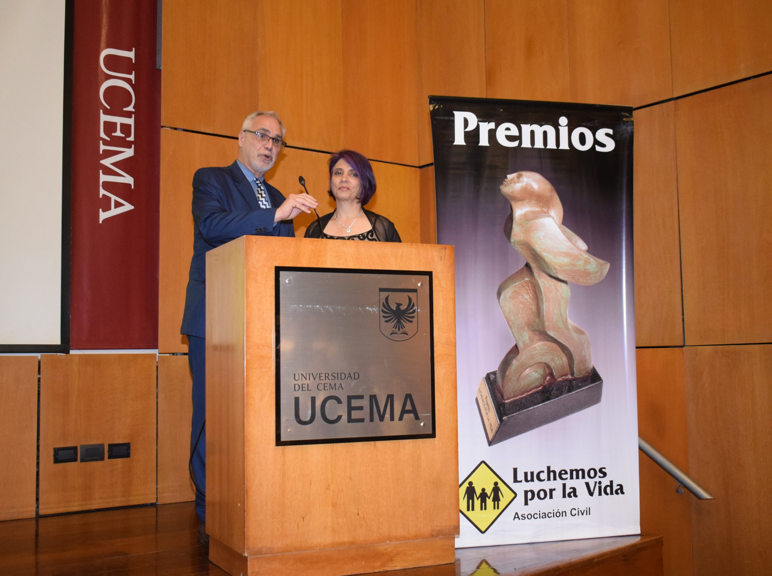 El audio de esta nota recoge su palabra al recibir el Premio Luchemos por la Vida de Oro de manos de María Cristina Isoba, presidenta de la asociación civil que da nombre a los galardones. El homenajeado es la voz institucional desde los inicios, hace 35 años. Se acercó junto a Alejandra Zúccoli, su esposa y colaboradora profesional.