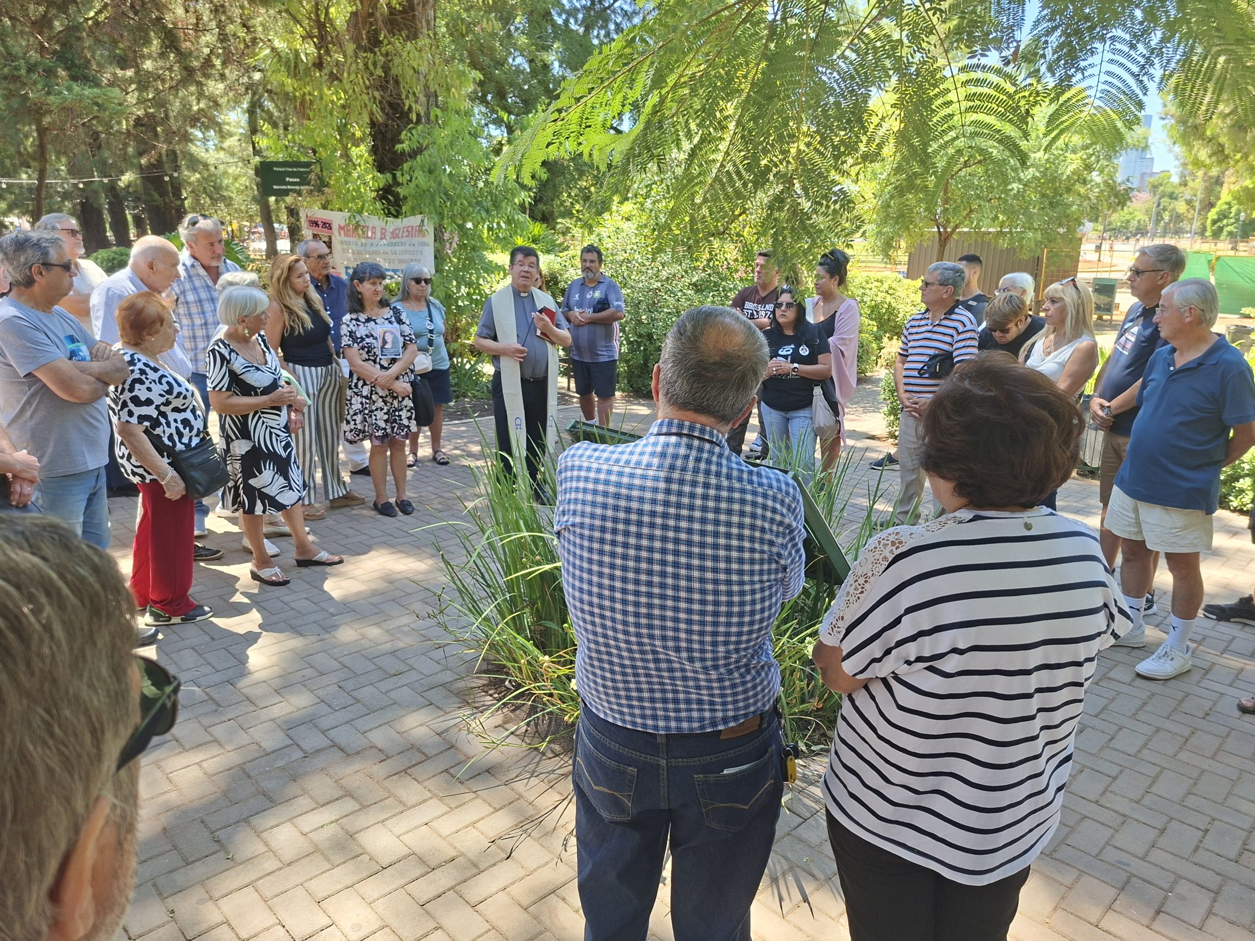 «Por eso, uno pide la mayor rigurosidad en cuanto al fallo y que a nosotros también nos resarzan como corresponde, tanto lo psicológico como lo material», resume Eduardo una lucha notoriamente prolongada y compleja con múltiples aspectos; uno es el económico o financiero, que ha implicado enormes dificultades para él y su esposa, simples jubilados; «todas esas demandas fueron formuladas ahí, no estoy diciendo otra cosa que lo que declaré en el cuestionario que nos presentaron; bueno, muchas gracias de nuevo por acompañarnos; ahora colocamos unas flores y terminamos el acto».