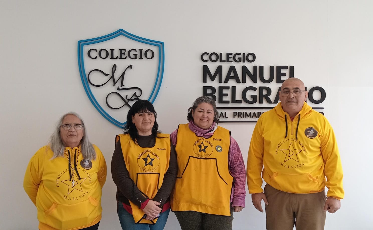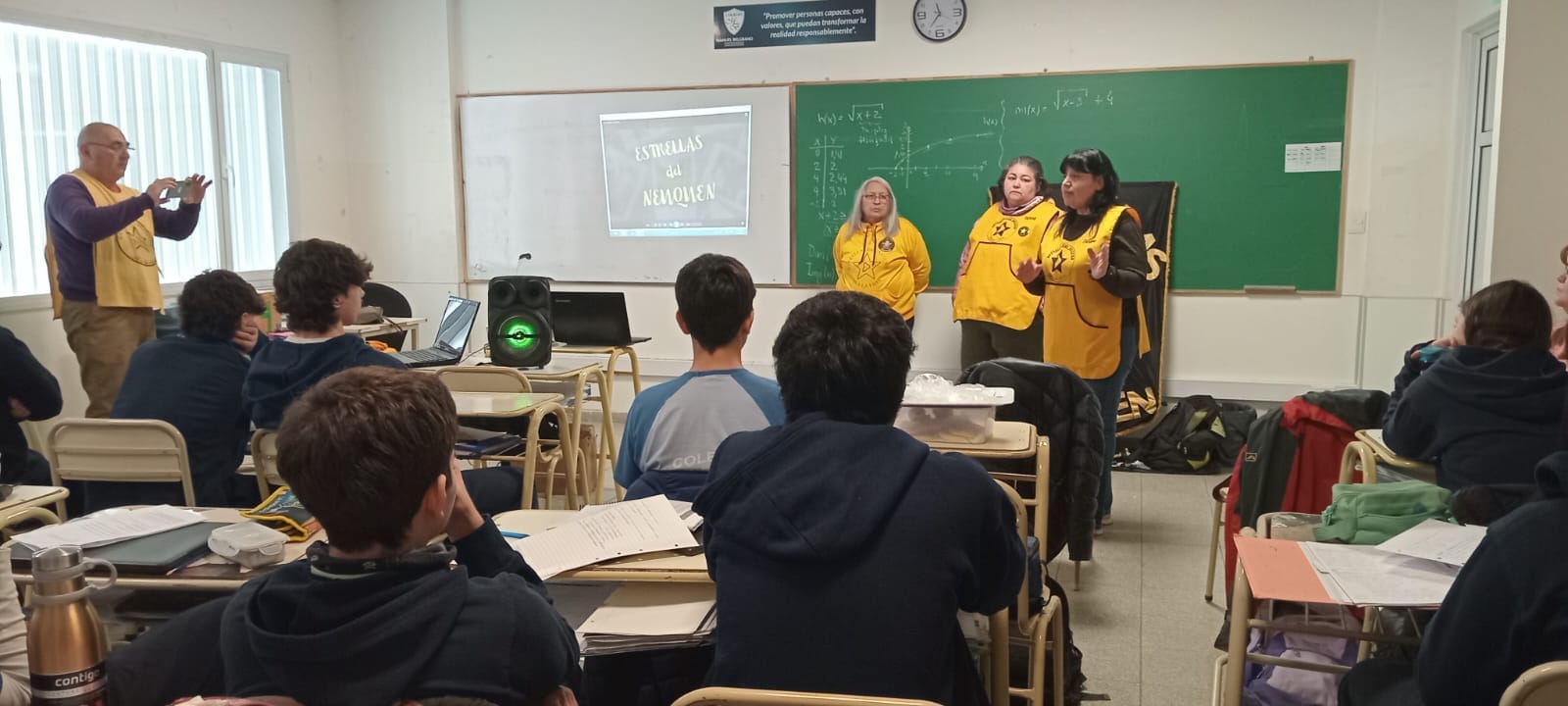 Fabiana Marillán y equipo durante una charla de prevención en una escuela.