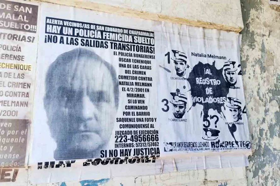 El controvertido privilegio fue suscripto el pasado 27 de diciembre por los Tribunales de Mar del Plata. Echenique lo estrenó el domingo 5 de enero. Según lo establecido, visitó de 8 a 20 la casa de su hermana Patricia en el barrio San Eduardo, localidad de Chapadmalal. Mientras tanto, en simultáneo, los padres de Naty, vecinos y militantes recorrieron la zona repartiendo panfletos. «Atención vecinos/as: hay un policía femicida suelto», decían las papeletas; «si lo ven caminando por el barrio sáquenle fotos y comuníquense al Juzgado de Ejecución: 223 4956666, interno 57312 / 57462».