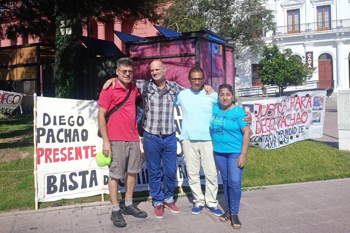 «Vamos a denunciar a la fiscal González Pinto en la oficina de sumarios de la Corte de Justicia», anuncia Luis Rodríguez en diálogo con la prensa en la Plaza 25 de Mayo, centro neurálgico de San Fernando del Valle de Catamarca; mientras él conversa con un periodista, Claudia Liliana Véliz, la mamá de la víctima, charla con otro reportero a algunos metros de distancia; «a la vez, vamos a instar la nulidad de todo lo resuelto y que se active la investigación real sobre los policías Bayón y Vizcarra, sospechados de haber participado en la tortura y posterior muerte de Diego Iván Pachao».