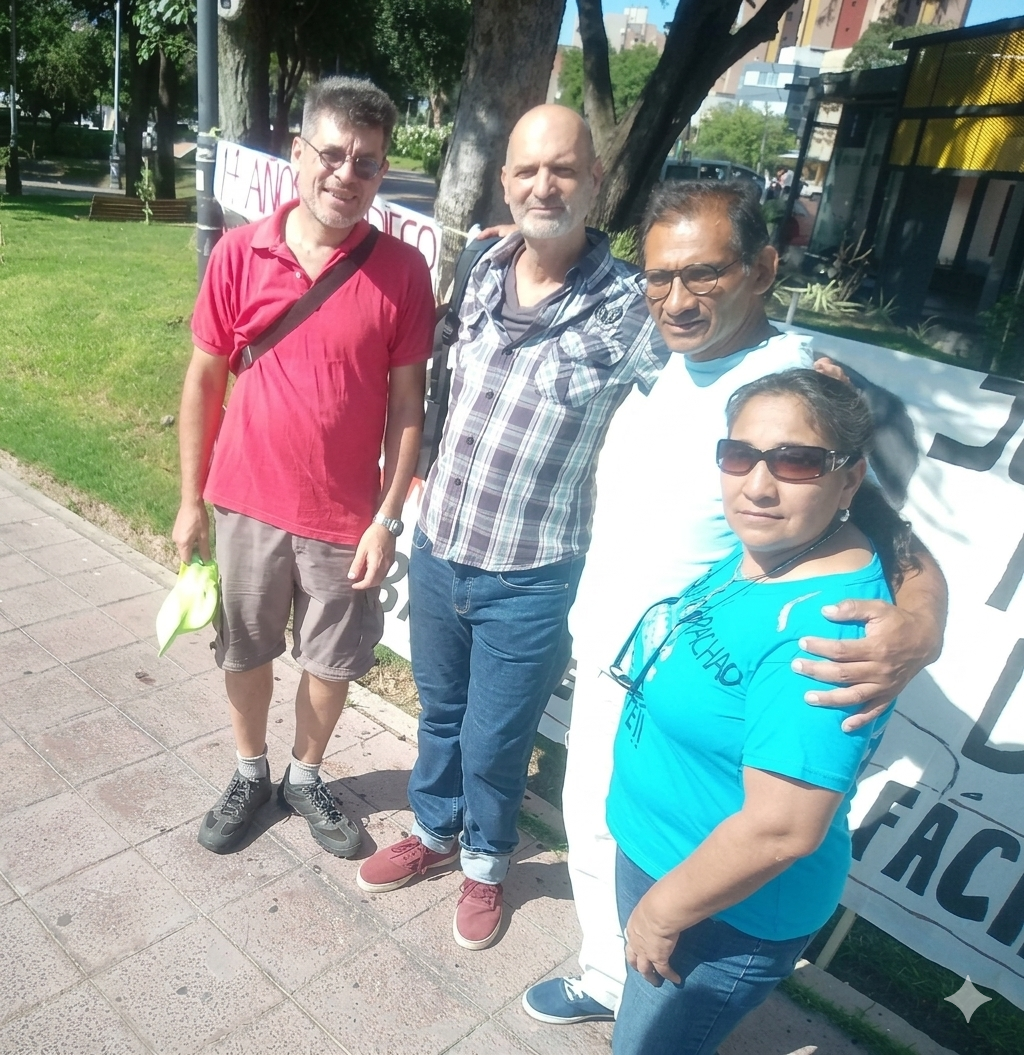 «Estamos nuevamente lidiando con el Poder Judicial», explica Claudia; «porque se pidió en 2024 desde la Corte de Justicia provincial a la Fiscalía que se investigue a dos policías que fueron señalados en rueda de reconocimiento; ellos son Nelson Bayón y Fabián Vizcarra; lamentablemente, la fiscal González Pinto no cumplió con lo que se le pedía y se abocó a resolver el sobreseimiento de otros dos policías que son también asesinos: Sotomayor, José Daniel, y Moya, Pedro Hilario; este último es el chofer de policía que lo lleva en el móvil a mi hijo; estos dos quedaron sobreseídos y la causa fue archivada».
