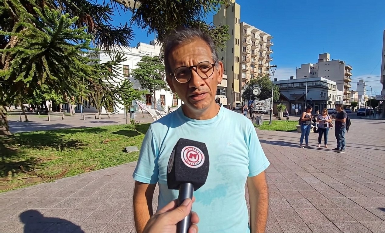Luis Rodríguez entrevistado en la Plaza 25 de Mayo.