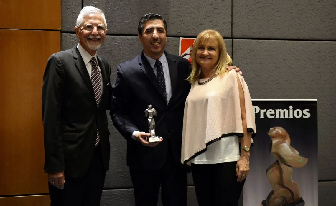 Alberto Silveira, Maximiliano Montenegro y Cristina Isoba. El periodista sostiene el Premio Luchemos por la Vida de Plata, que entrega anualmente la entidad fundada por el matrimonio.