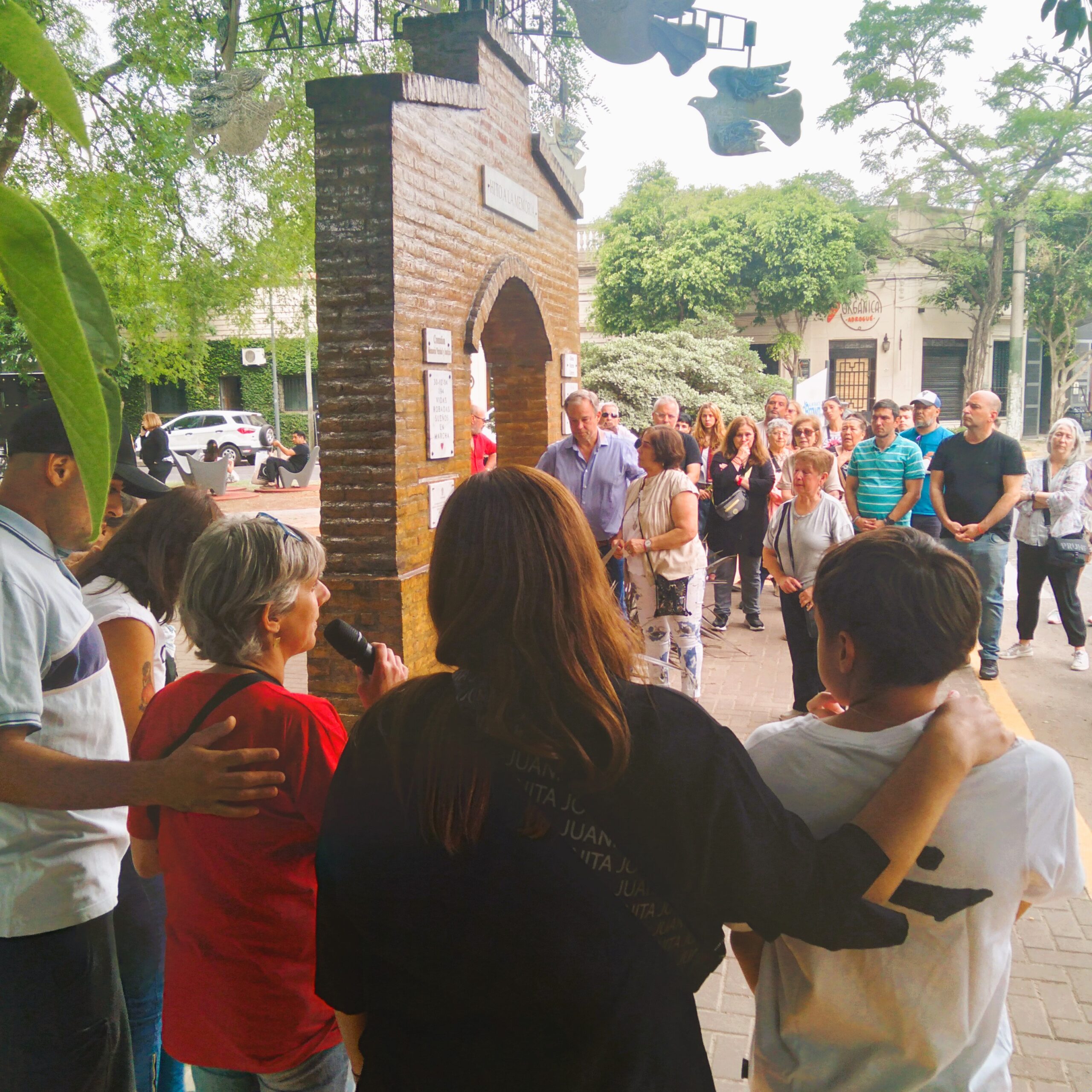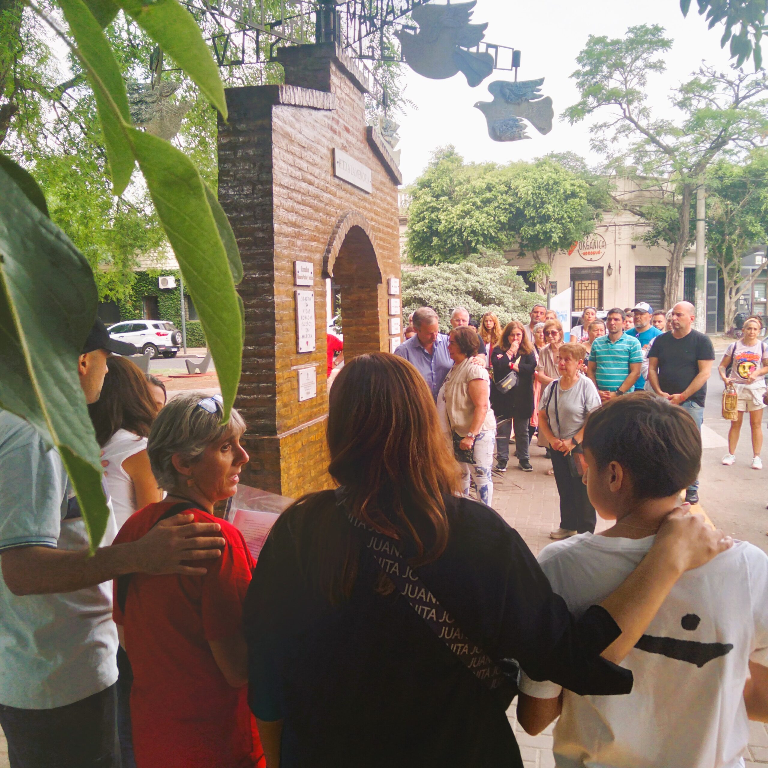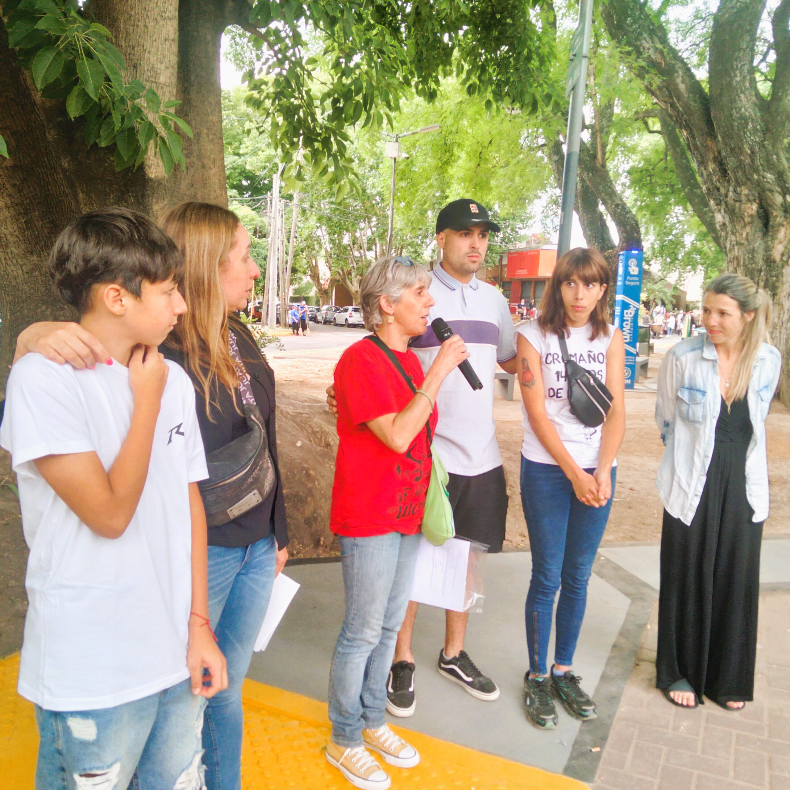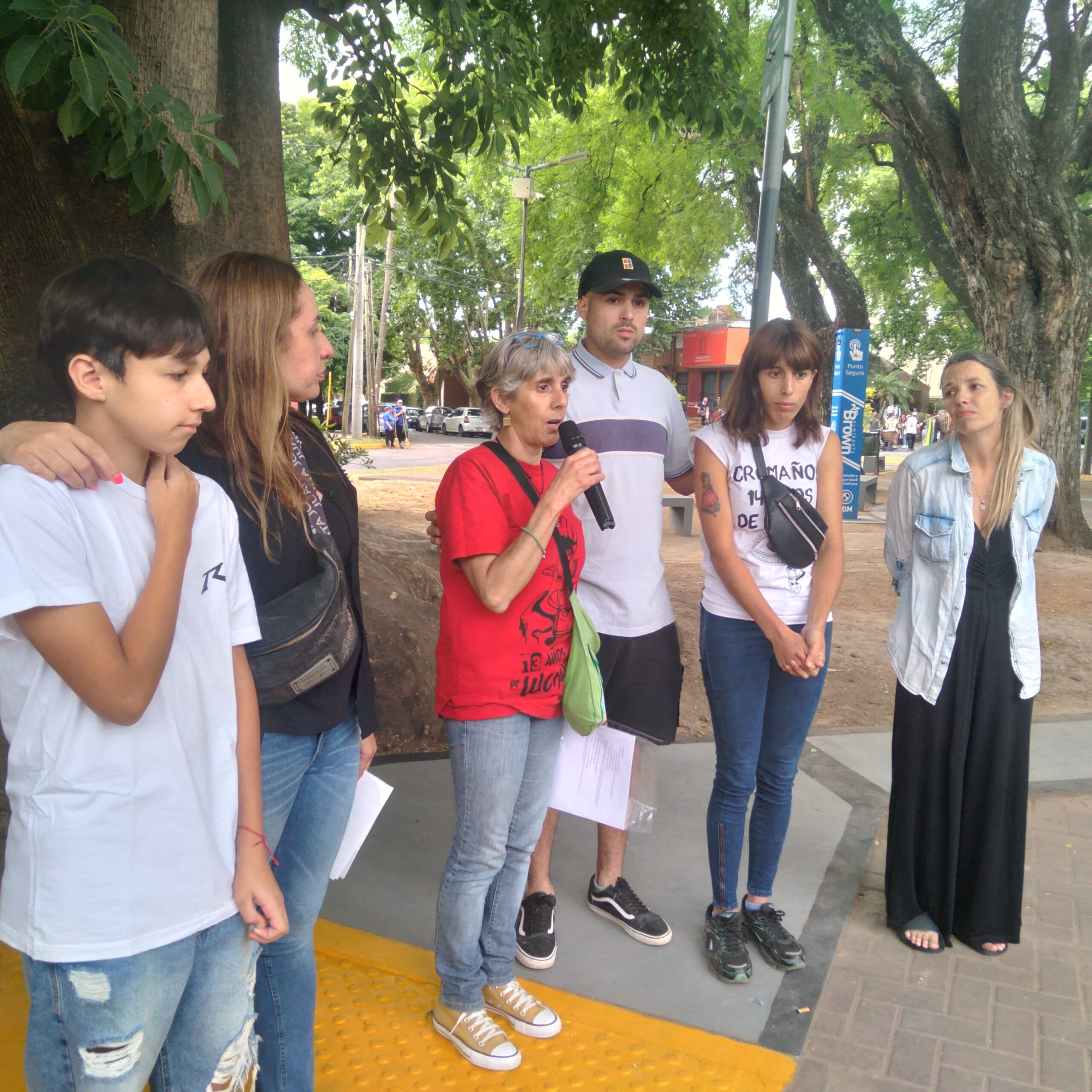 Mientras habla en el micrófono que sostiene con la mano derecha, Matilde percibe en la espalda la mano de su hijo Fabrizio, ubicado a su izquierda. A continuación se encuentra Anahí. La madre luce remera colorada, el muchacho chomba gris y gorra negra, la chica una riñonera de cuerina oscura cruzada sobre su remera blanca. La arboleda frondosa tapa el sol de la tarde del 22 de diciembre en la Plaza Bynnon, localidad de Adrogué, partido bonaerense de Almirante Brown. El bautismo del remanso verde corresponde a un prócer, Santiago Jorge Bynnon, lugarteniente del fundador de la Armada Argentina.