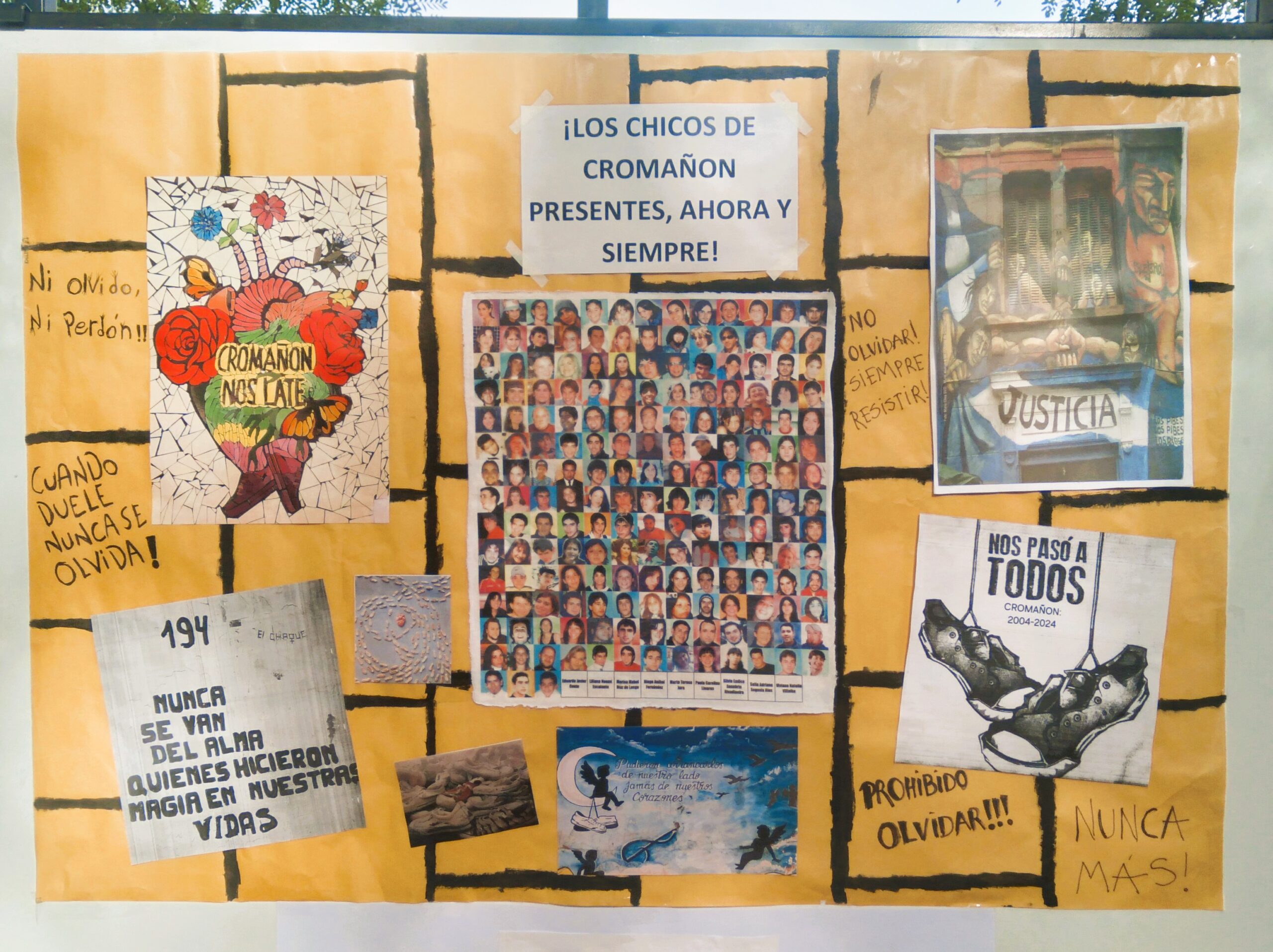 «Por último, es importante recordar que desde 2005 esta vigente el decreto 391/2005 que establece para la Provincia de Buenos Aires que el día 30 de marzo de cada año se conmemore a las víctimas de Cromañón y se reflexione sobre el drama en las escuelas en todos sus niveles», concluye la protagonista, habitante de la zona, e invita a los presentes a aprovechar la oferta de actividades. Una muestra de fotos, carteles y libros desplegada bajo la arboleda. Poemas recitados por un autor local, Juan García Maldonado. Un recital de rock con dos bandas también autóctonas, Alma embrujada y Los Pendientes.