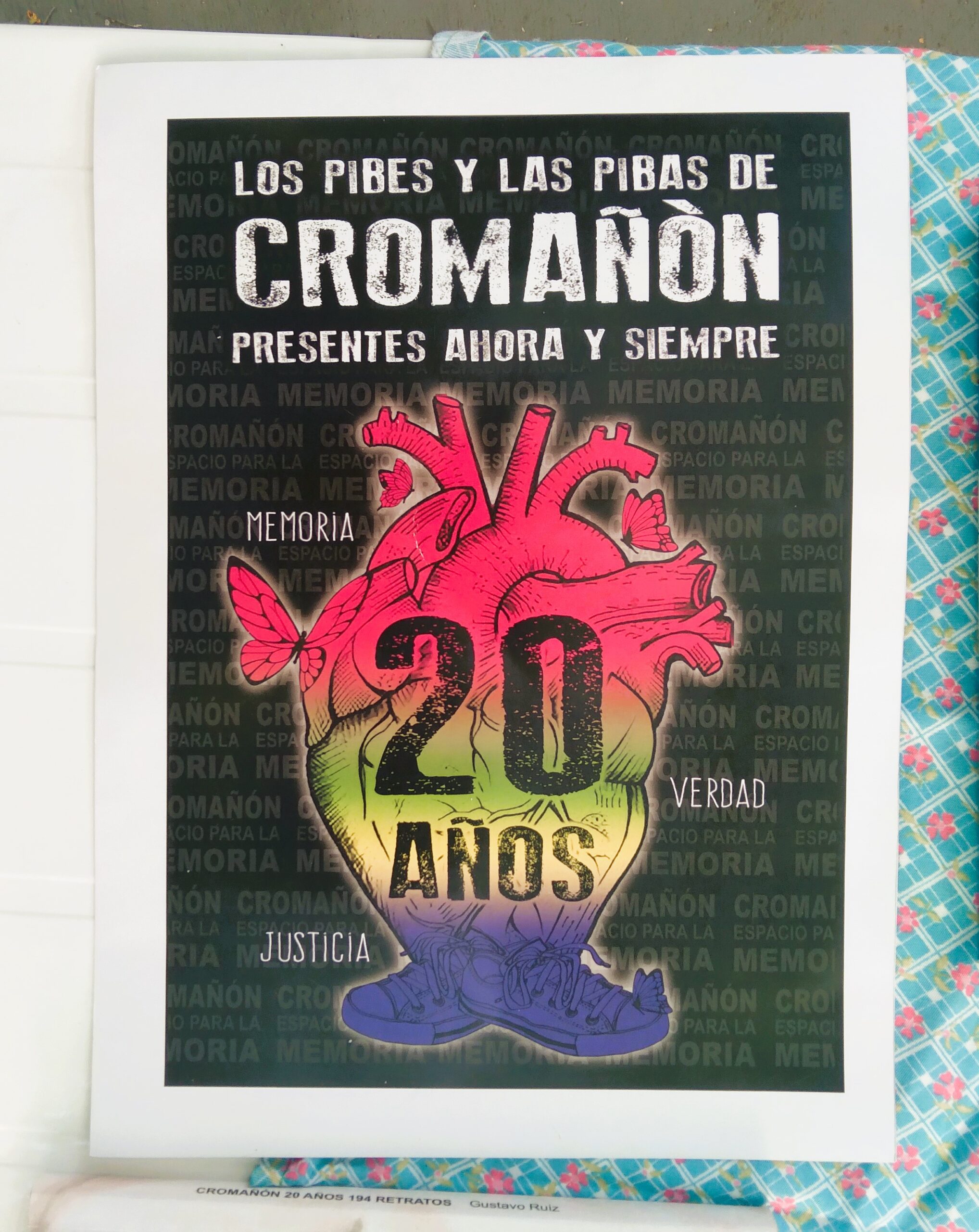 «Porque sin memoria no habrá un nunca más Cromañón, como repite una de nuestras históricas consignas; otro momento digno de mención fue la votación casi por unanimidad de la ley de reparación histórica en la Legislatura de la Ciudad de Buenos Aires el pasado 12 de diciembre; una norma que a pesar de no ser todo lo justa que quisiéramos constituye un avance en tanto obliga al Estado a reconocer a sobrevivientes y familiares, a tomar las medidas necesarias tendientes a reparar los daños provocados; queda por ver que se haga efectiva y que se amplíe para que sea realmente una ley reparatoria».