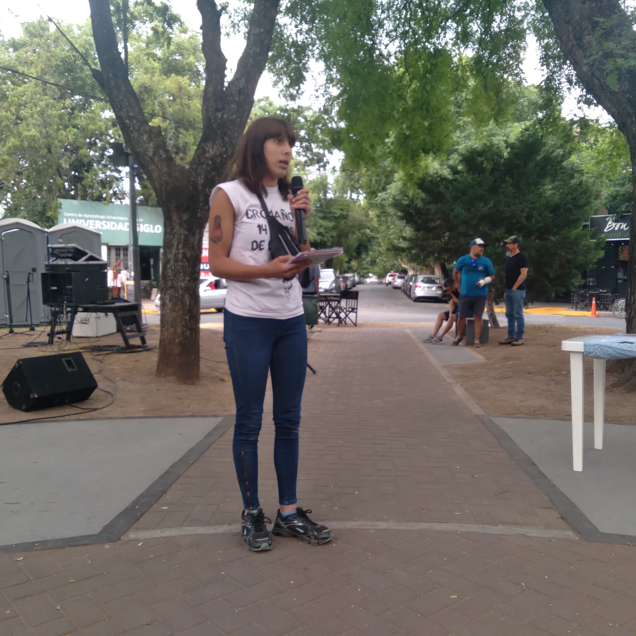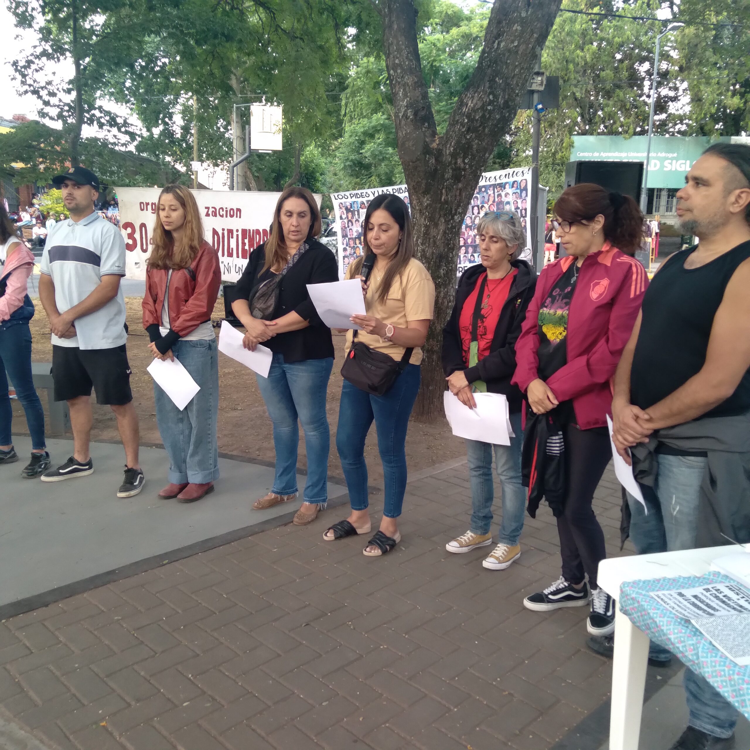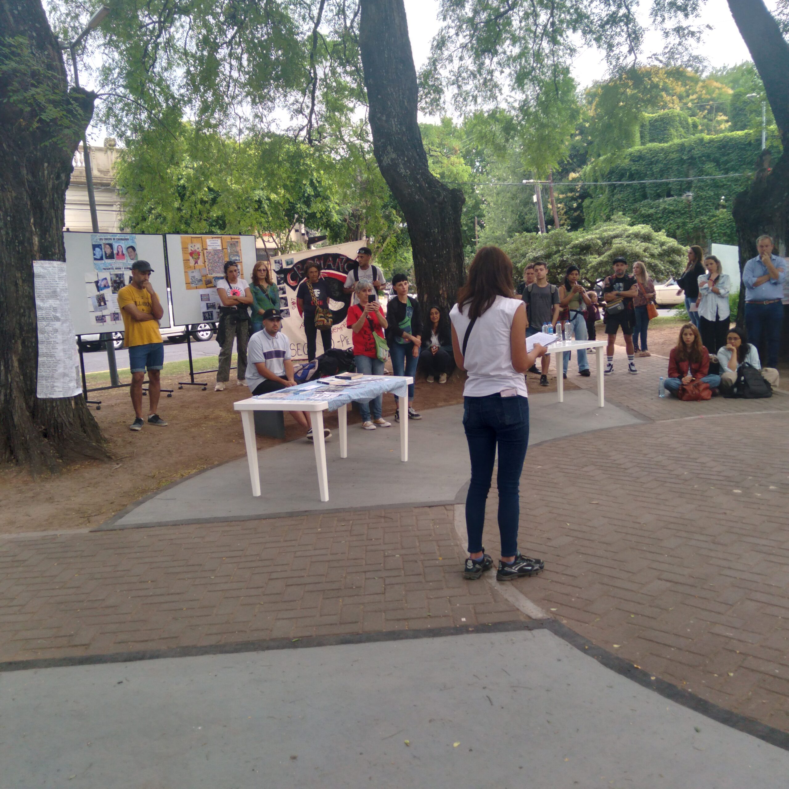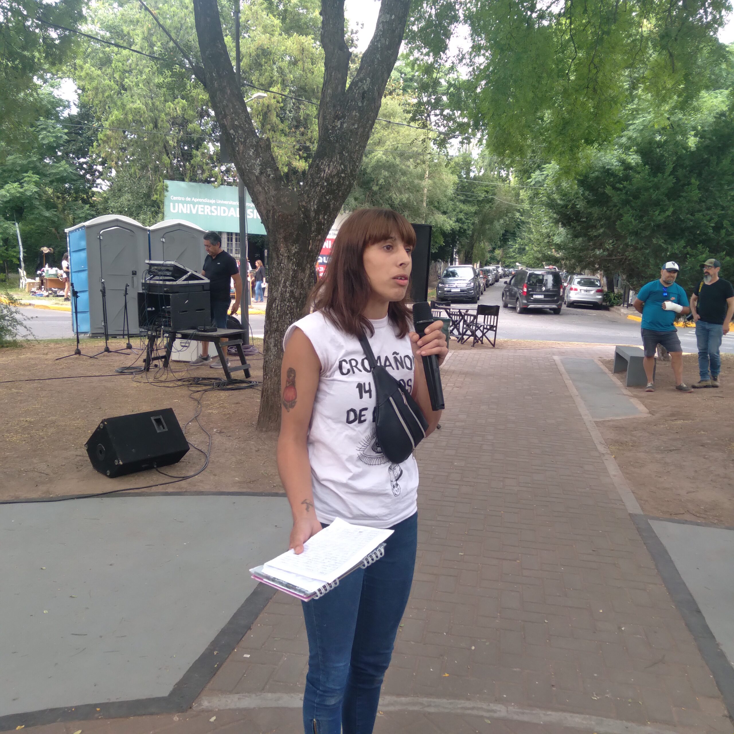 «Agradezco a los que se acercaron; a las familias Cabrera y Taborda; entre todos pudimos sacar adelante la jornada; allá veo a Gustavo [Ruiz], que llegó corriendo; a la Organización 30 de Diciembre, representada por Eduardo y Fabiana, que también estuvieron; a mis compañeras de escuela, Vanina y Cintia; la Secu 10; a los chicos de Alma Embrujada; a Los Pendientes; a Juan García Maldonado; vamos a cerrar, como siempre que hacemos una actividad por los pibes, nombrando a los 194; van a ver que lleva un poco de tiempo, pero eso permite comprender la cantidad de personas que no están más con nosotros».
