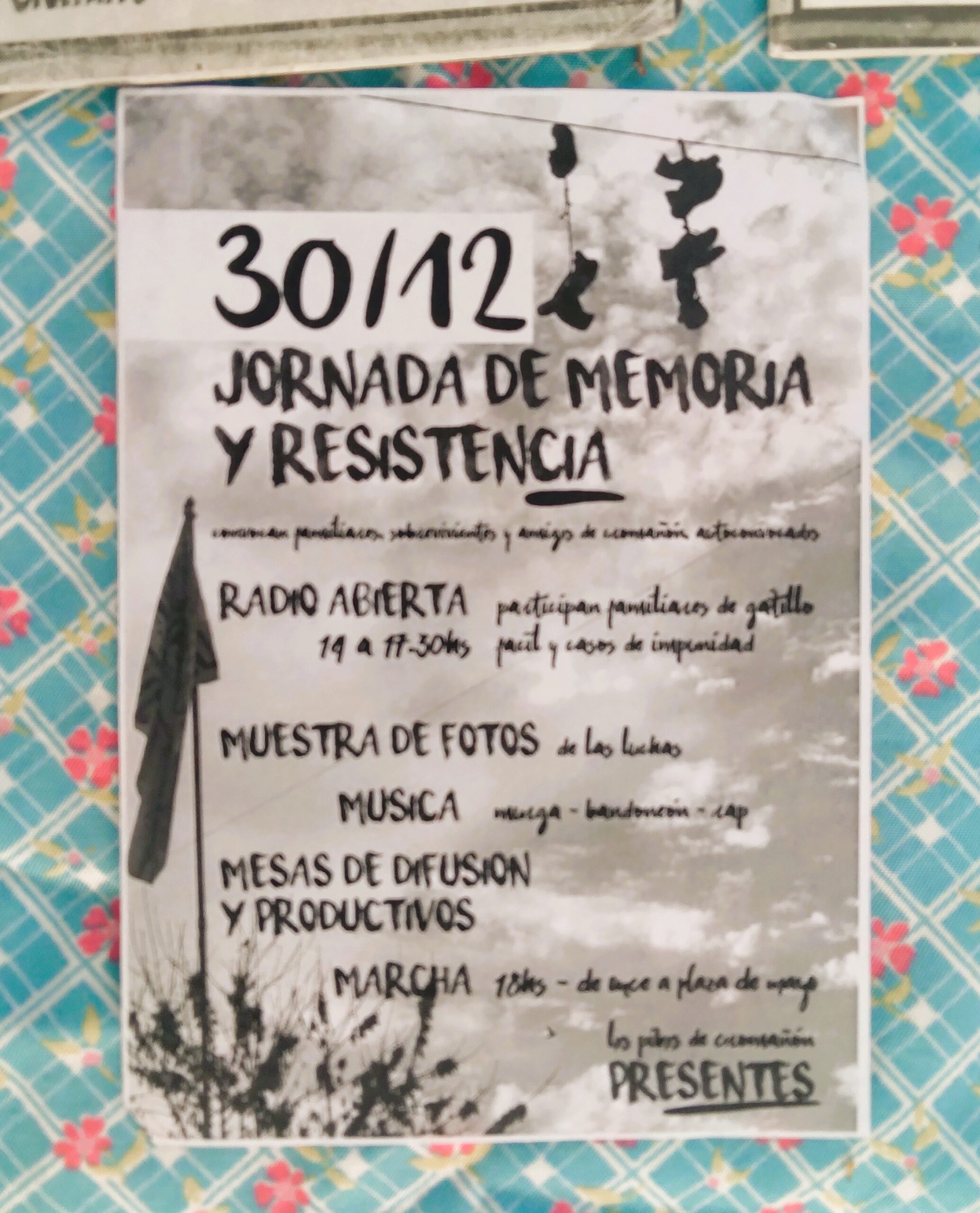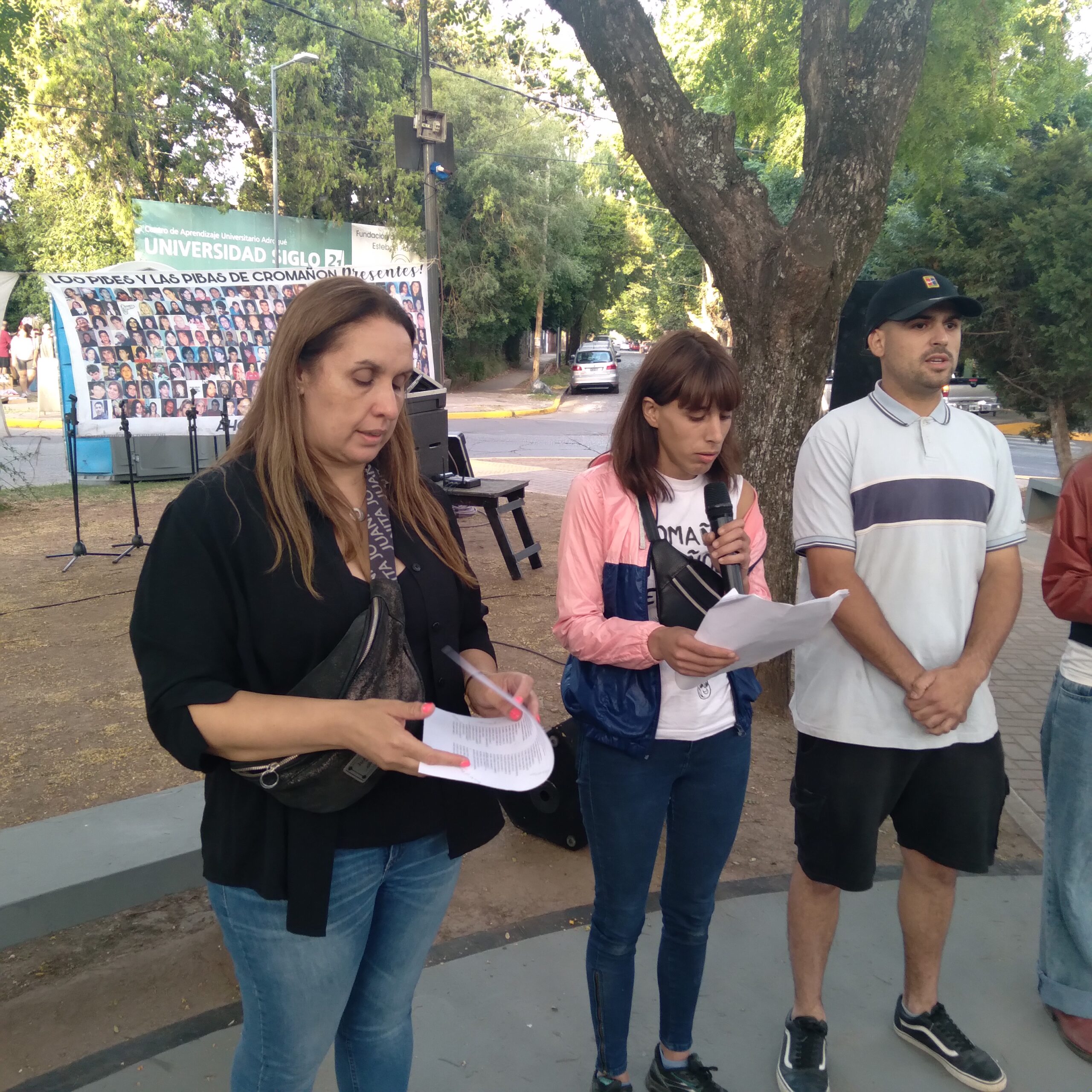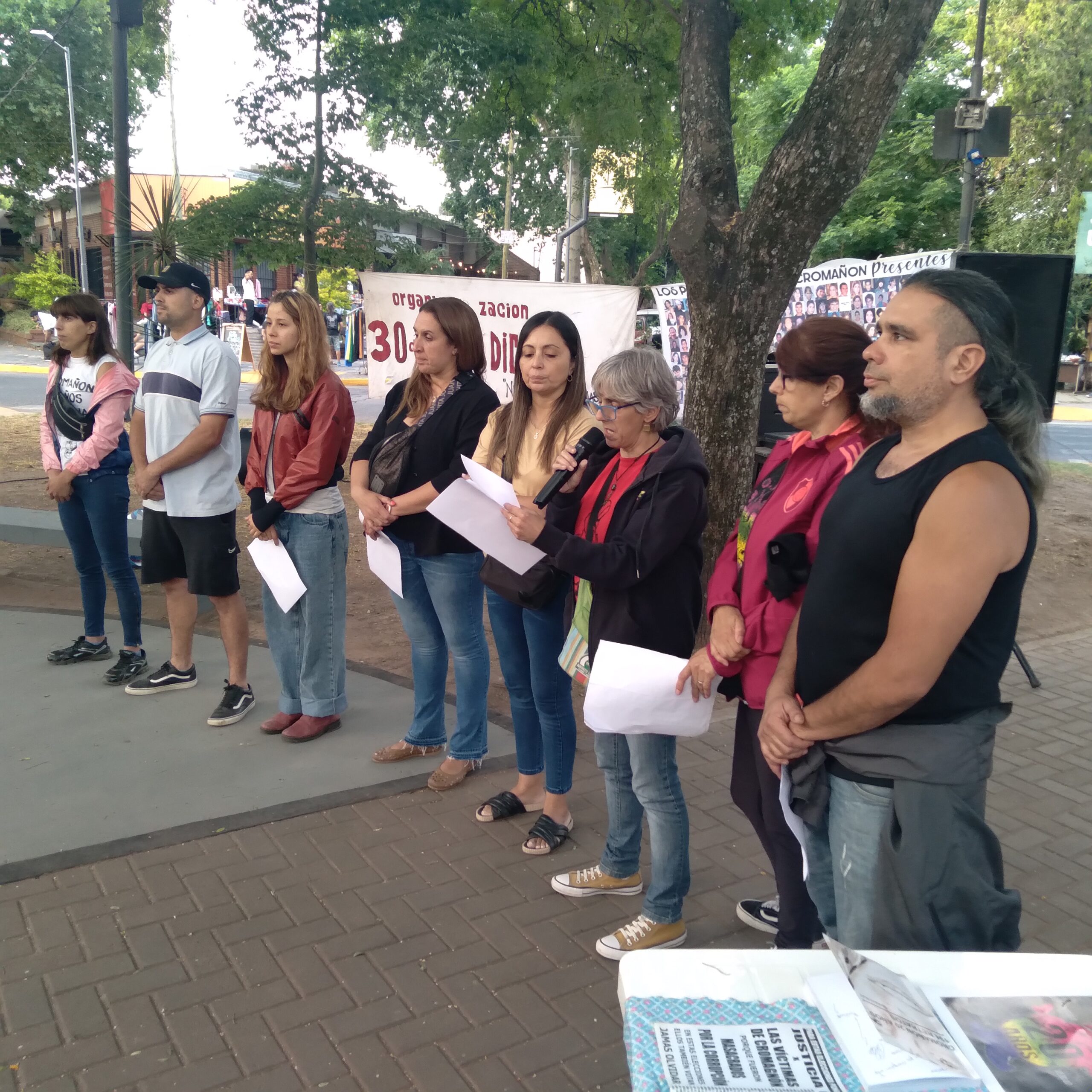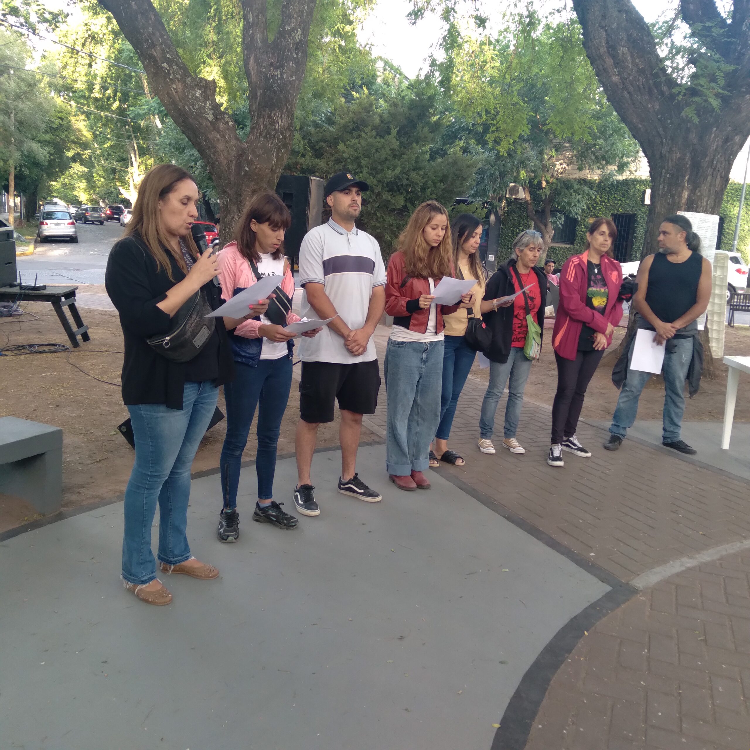 «Agradezco a los que se acercaron; a las familias Cabrera y Taborda; entre todos pudimos sacar adelante la jornada; allá veo a Gustavo [Ruiz], que llegó corriendo; a la Organización 30 de Diciembre, representada por Eduardo y Fabiana, que también estuvieron; a mis compañeras de escuela, Vanina y Cintia; la Secu 10; a los chicos de Alma Embrujada; a Los Pendientes; a Juan García Maldonado; vamos a cerrar, como siempre que hacemos una actividad por los pibes, nombrando a los 194; van a ver que lleva un poco de tiempo, pero eso permite comprender la cantidad de personas que no están más con nosotros».