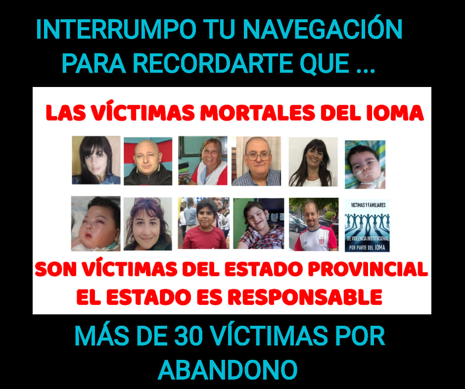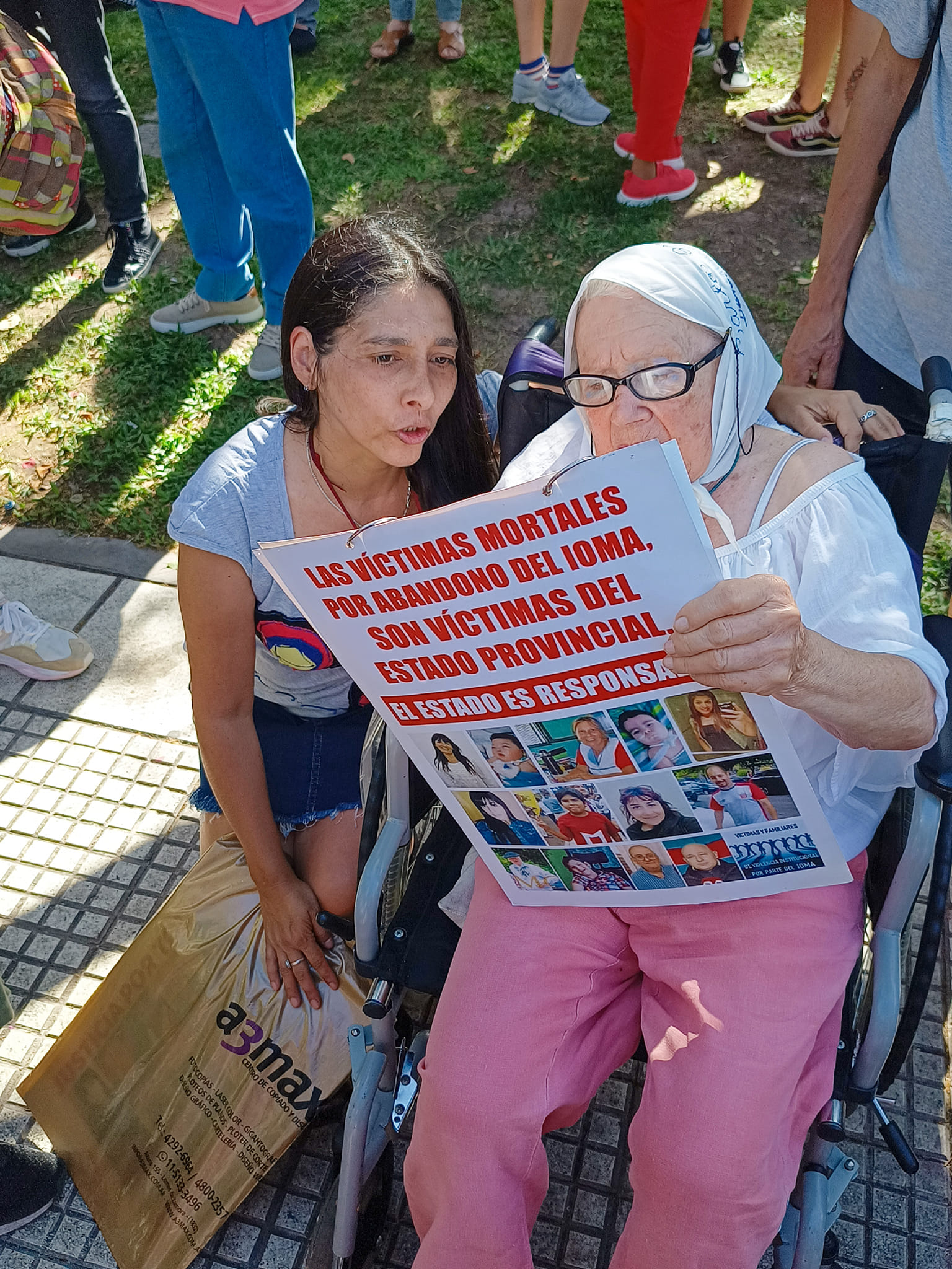 «Como grupo hemos acompañado la demanda de afiliados que venían con retraso en sus prestaciones; reclamamos que se interviniera en estas situaciones; planteamos que no queríamos padecer más decesos como consecuencia del abandono; hubo un mediador que tomó nuestro requerimiento y con su ayuda logramos una reunión con Homero Giles, presidente de IOMA; le expresamos la necesidad de reconocimiento de nuestras víctimas y nos contestó en sentido negativo; en la actualidad llevamos la lucha en el terreno legal, mientras seguimos exigiendo que la negligencia termine de una vez por todas».