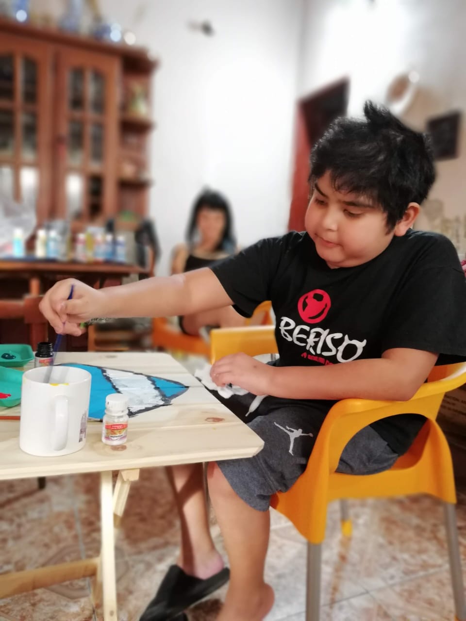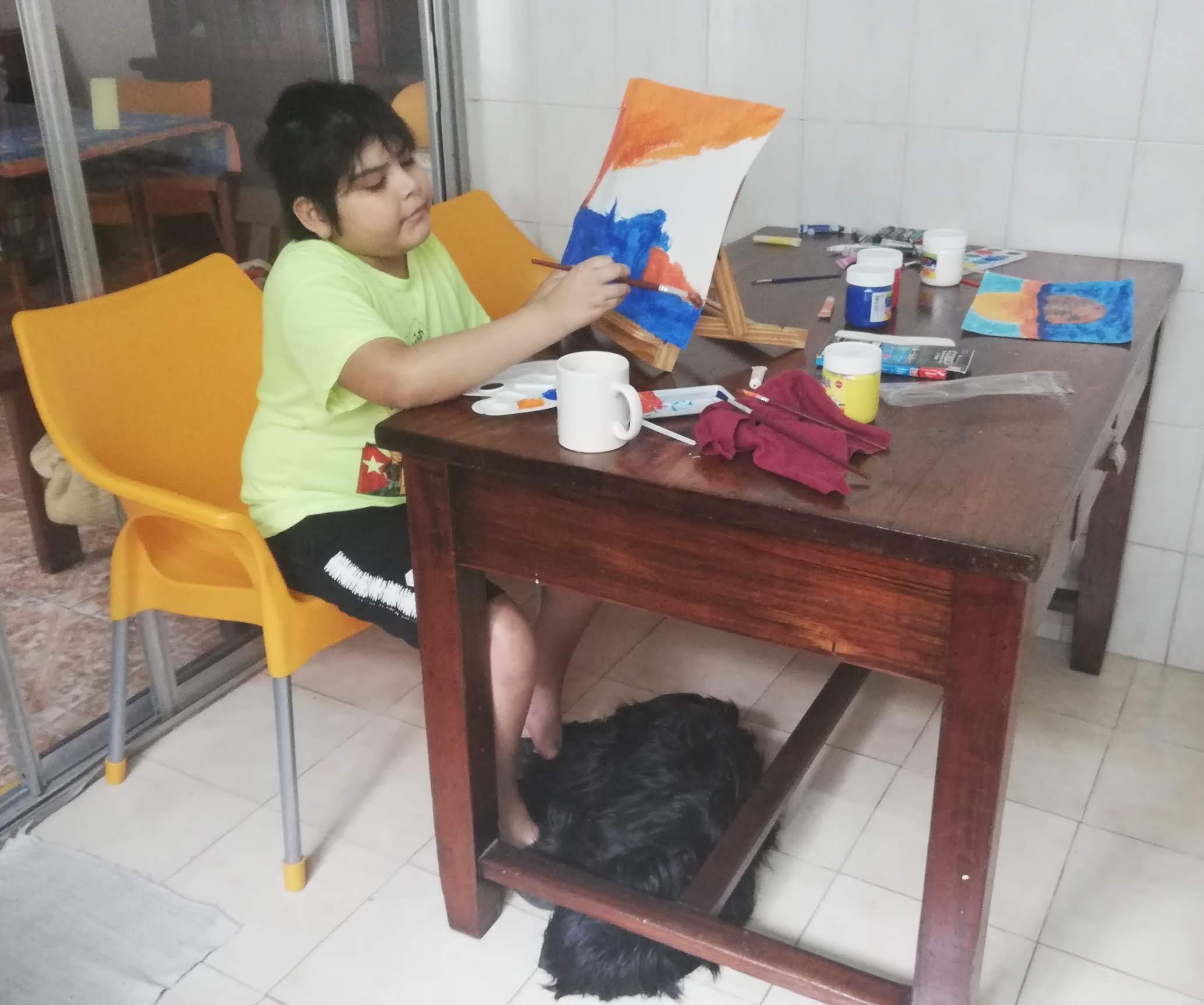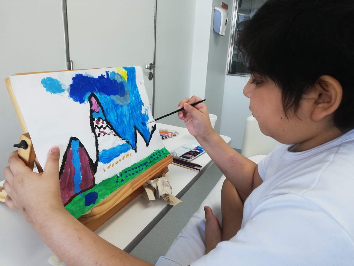 «Marianito empezó a pintar de manera compulsiva cuando una vez nos quedamos sin televisor porque se había roto y yo no sentía ningún apuro por reemplazar el aparato; esa circunstancia obligó a mi hijo a buscar alternativas para el tiempo libre y comenzó a volcar su imaginación en el dibujo y después la pintura con témperas; cuando tuvo que internarse por la enfermedad los médicos consideraron que era una excelente alternativa terapéutica; le conseguí un atril, pinceles, pinturas, papel y todos los elementos necesarios; el pintaba y pintaba; lo hacía con frescura y colores, inspirándose exclusivamente en su imaginación».