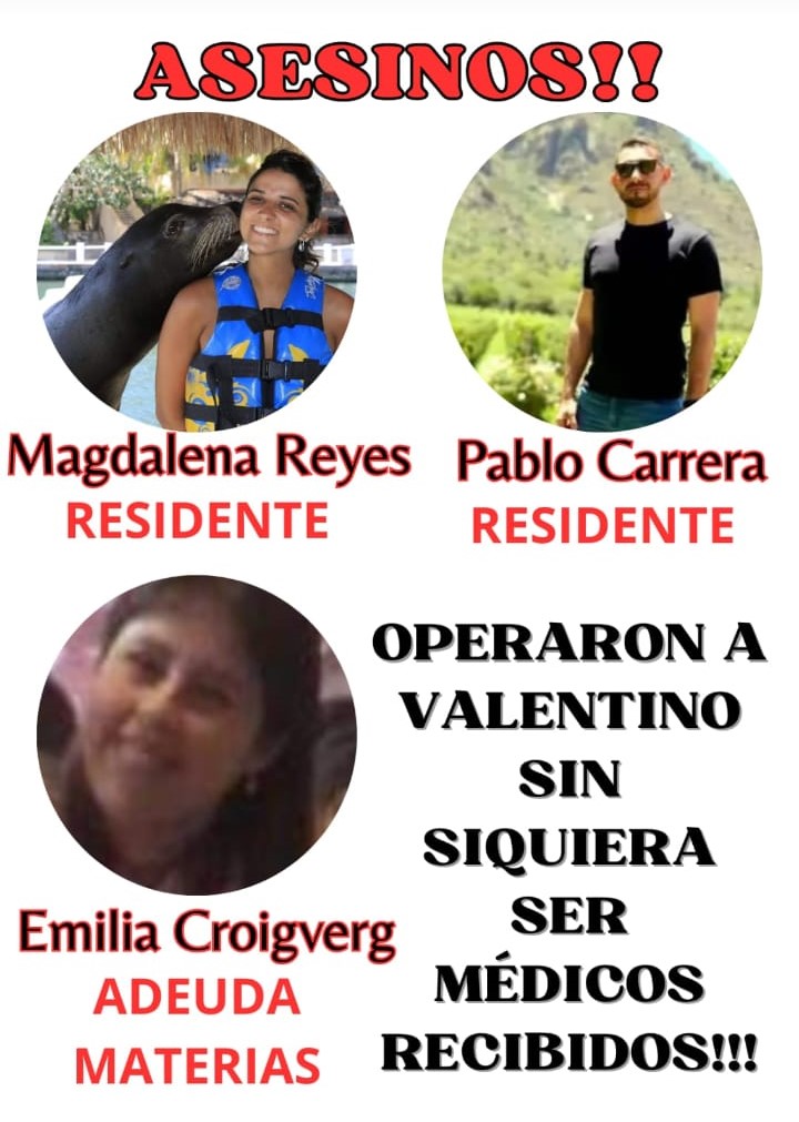 «Soy Natalia Cura, soy de Tucumán, soy mamá de Valentino Cura», comienza el audio de esta crónica; «a mi hijo lo operaron del corazón sin hacerle ningún estudio prequirúrgico ni nada; prácticamente me lo mataron residentes que se hicieron pasar por médicos cirujanos cardiovasculares; realmente me lo torturaron; hice la denuncia; el fiscal de la causa [Pedro León Gallo] me recibió una sola vez porque lamentablemente están involucrados tanto el ministro de Salud, Luis Medina Ruiz, como la directora del Hospital de Niños [Inés Gramajo]».