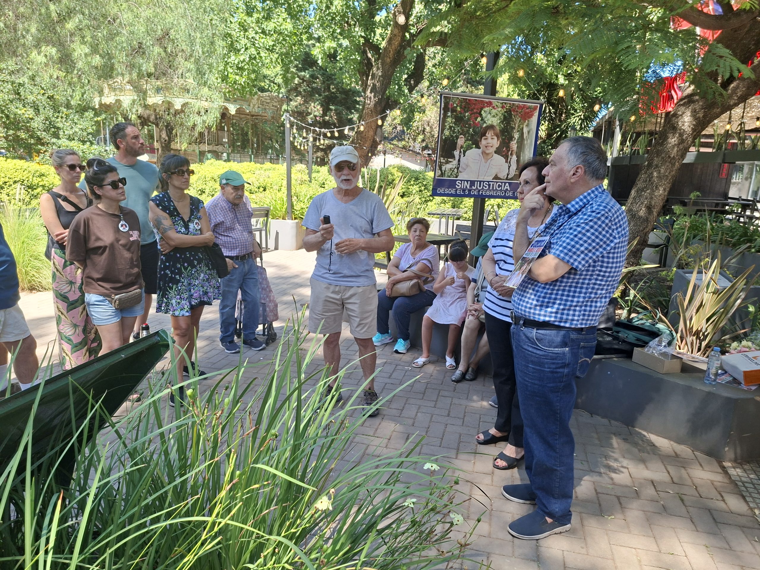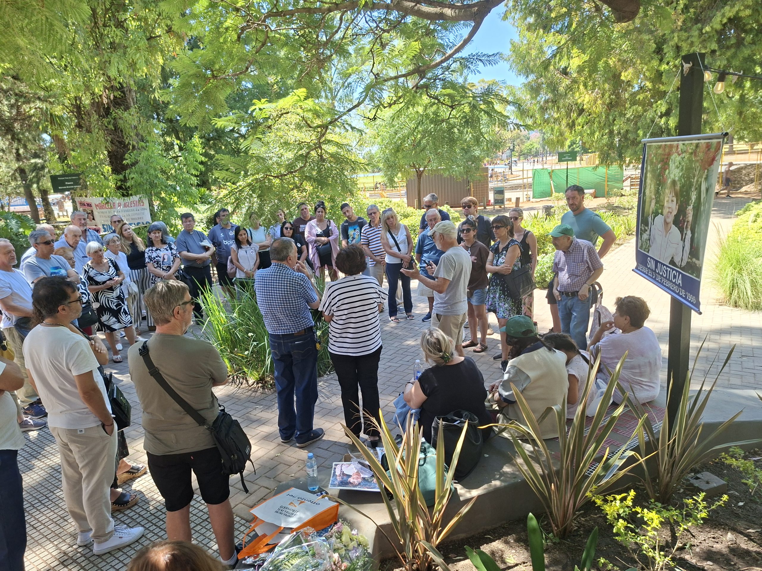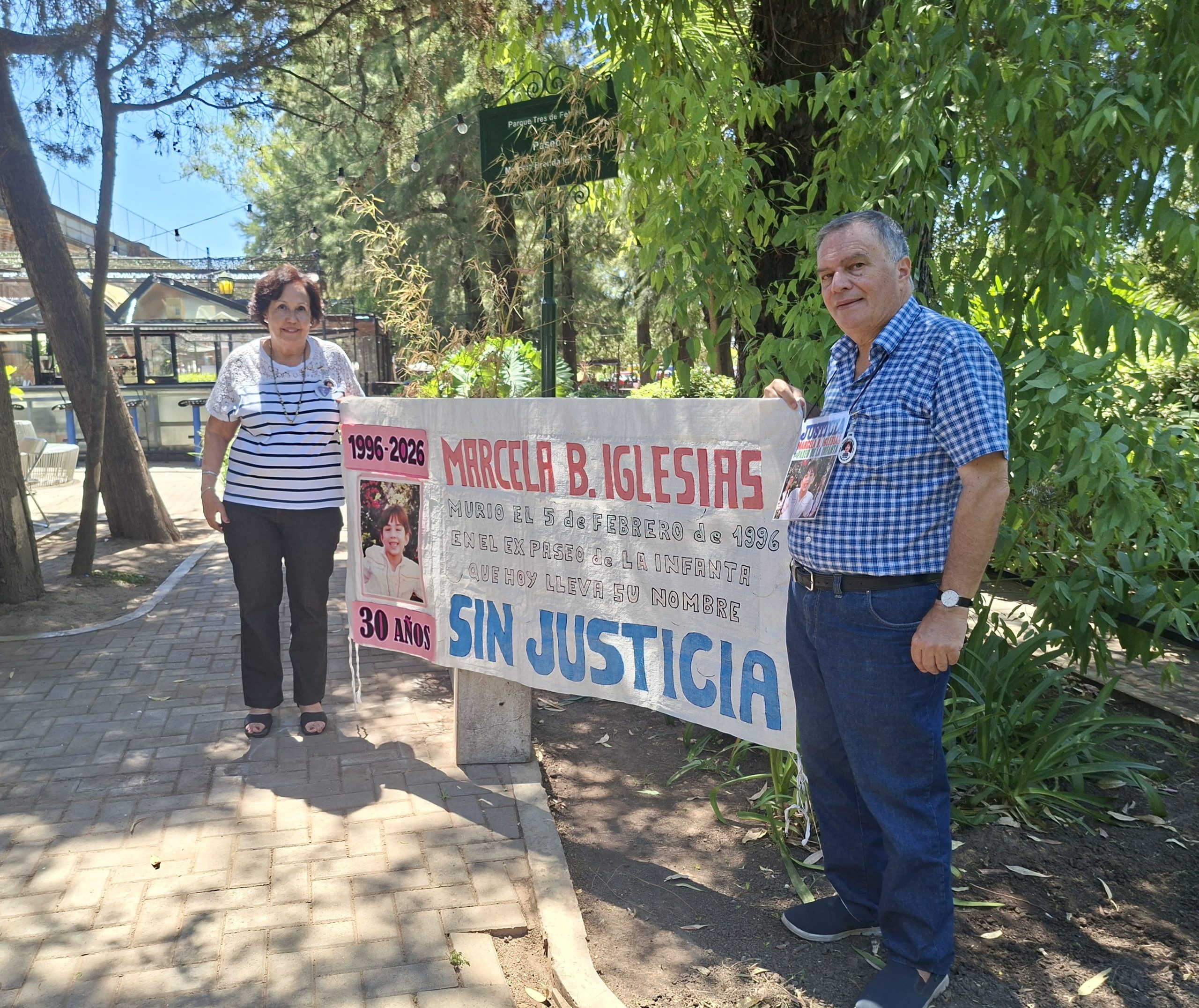 El espacio en la actualidad, producto de una ley porteña, lleva el nombre de la víctima: Paseo Marcela Brenda Iglesias. Se trata de la niña de seis años que el 5 de febrero de 1996 fue aplastada por una escultura expuesta ilegalmente en el sitio. En torno de los mencionados hay un grupo nutrido que incluye a familiares, amigos, el sacerdote Juan Carlos Martínez e integrantes de otra entidad ciudadana, las Madres del Dolor. El homenaje se desarrolla bajo la sombra de un jacarandá plantado en honor de la fallecida, cuyo ramaje frondoso ataja el sol inclemente del mediodía veraniego.