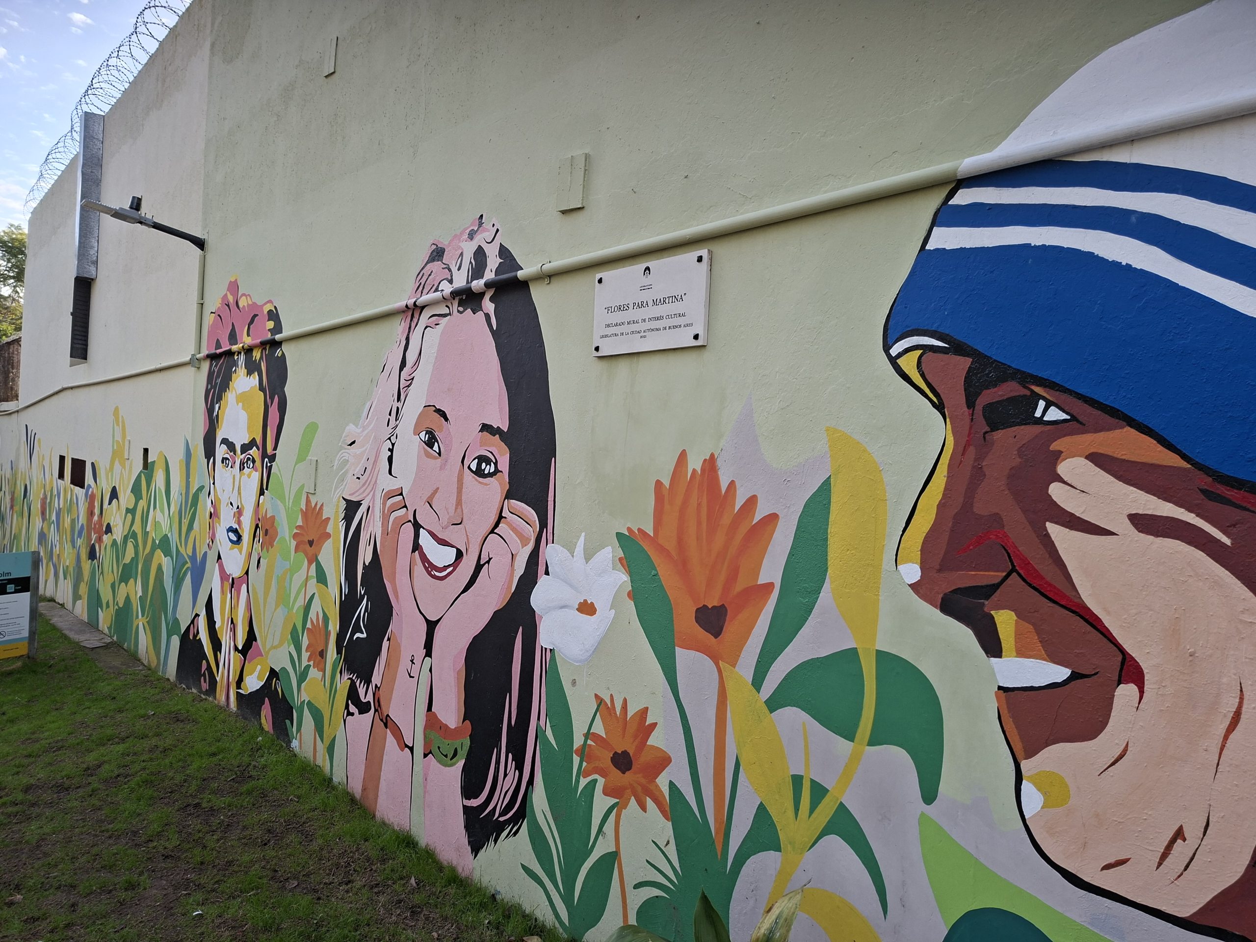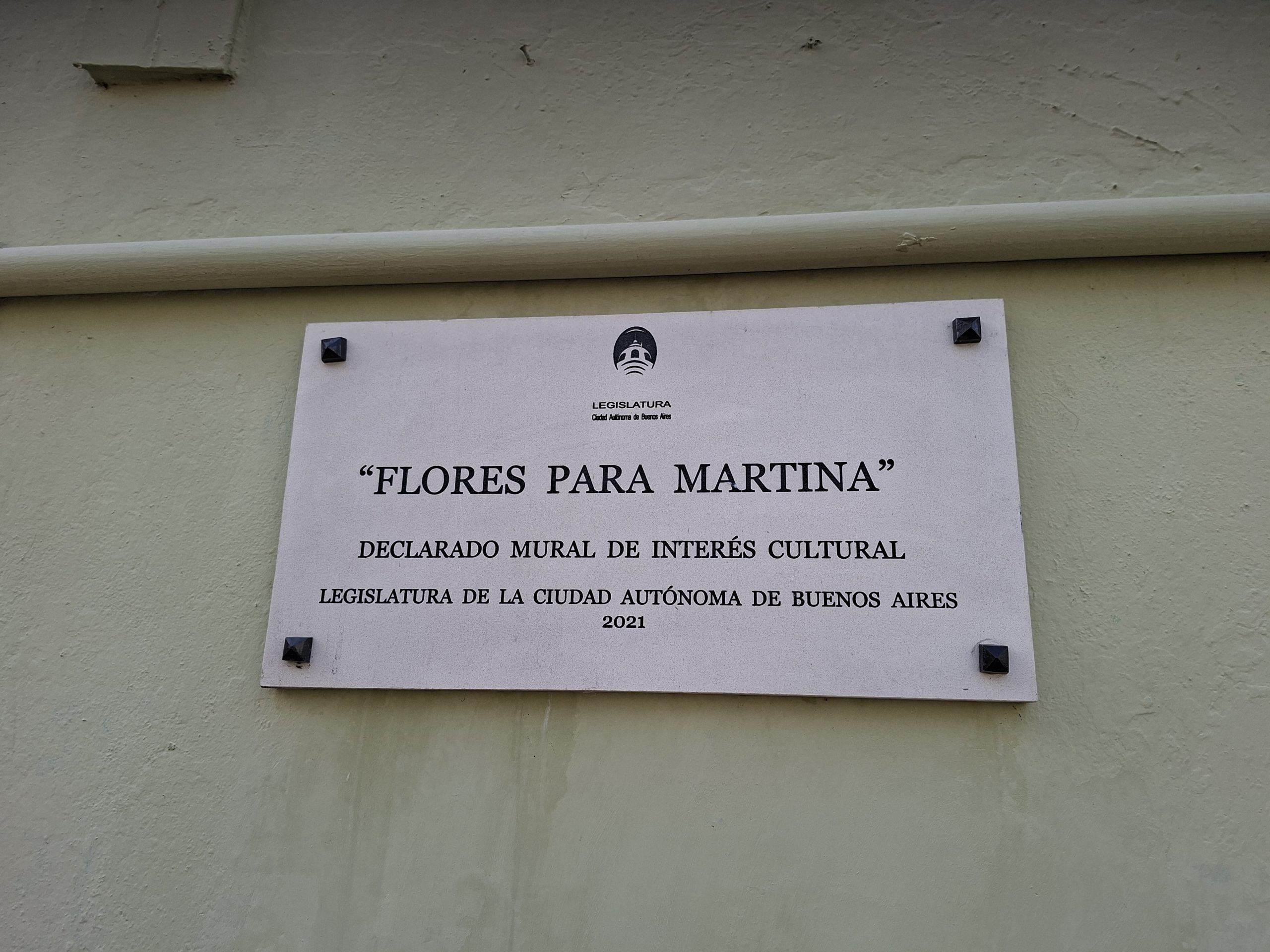 «Es un espacio en honor de Martina que se encuentra acá, en Gurruchaga 1070, Villa Crespo; la Comuna 15, su director de aquel momento, Martín Garcilazo, donó el espacio; hubo prensa, el que quiera ahondar la historia puede encontrarla en las noticias, en Google; después se hicieron más murales para víctimas vehiculares; dijimos que sí cuando nos lo propusieron porque creemos que permite mostrar a la víctima desde otra perspectiva, no desde el dolor; me lo enseñó Victoria; creo que es maravilloso llenar de vida los espacios públicos».