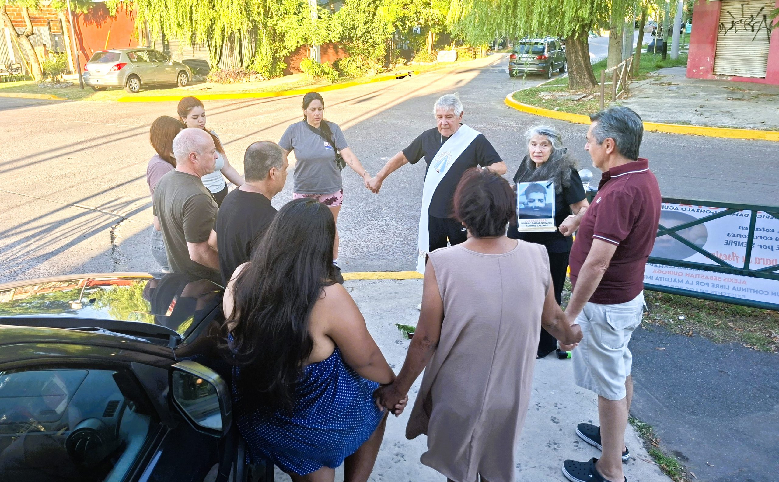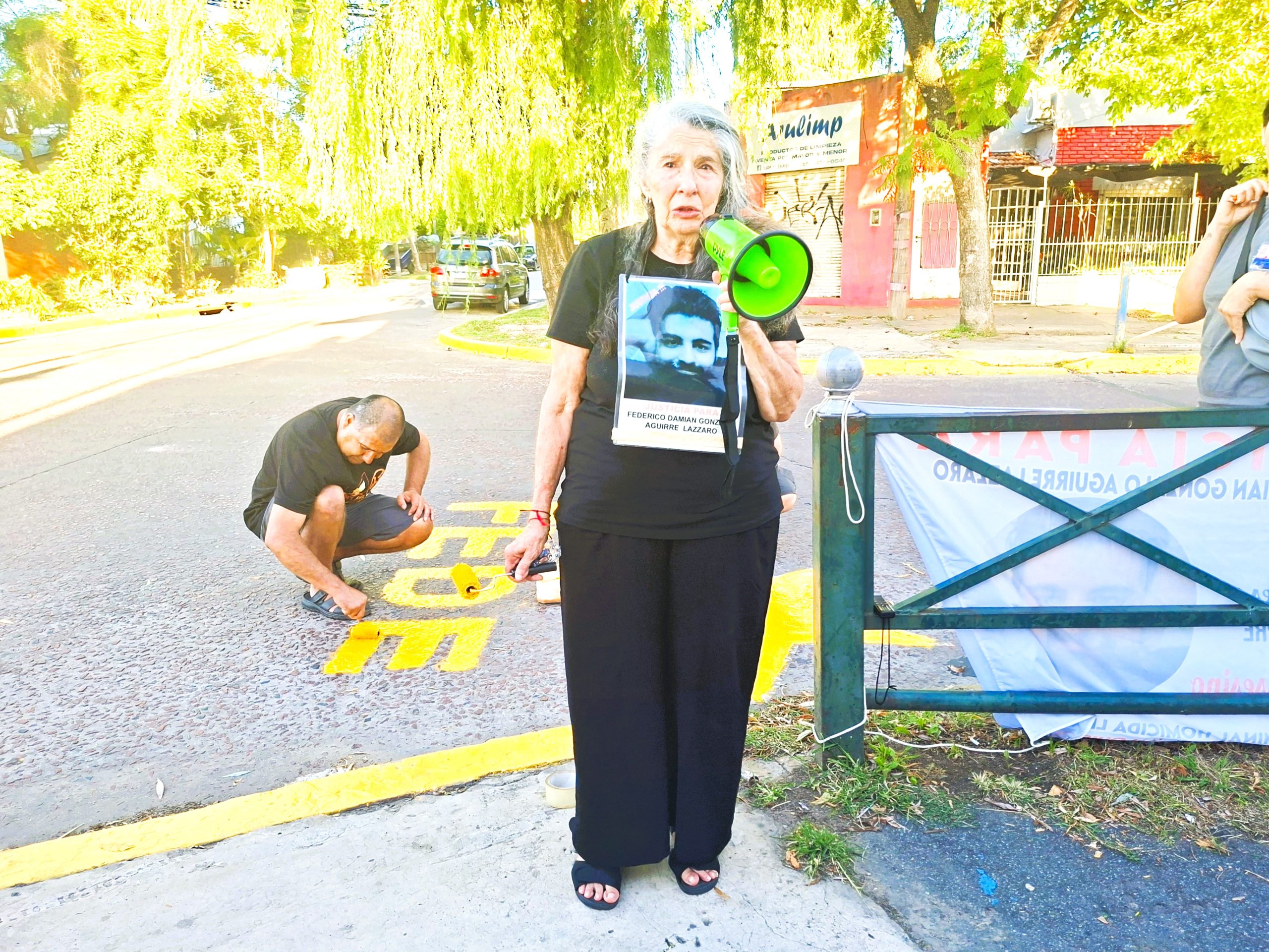 «Federico era un joven repleto de sueños y proyectos», comentó Susana, como puede escucharse en el audio de esta nota. La grabación incluye las voces de Valdivieso y Gorbak, entre otros. Para hacerse oir, la madre usó un megáfono que tiene incorporada una sirena estilo policial. «Fede presente», exclamó ella tres veces; «ahora y siempre», le respondieron los congregados en cada ocasión. De pronto, el sonido estridente de la bocina interrumpió por un momento el canto de los pájaros y las voces infantiles provenientes de los juegos de la Plaza del Niño Dios, adyacente a la esquina fatídica.