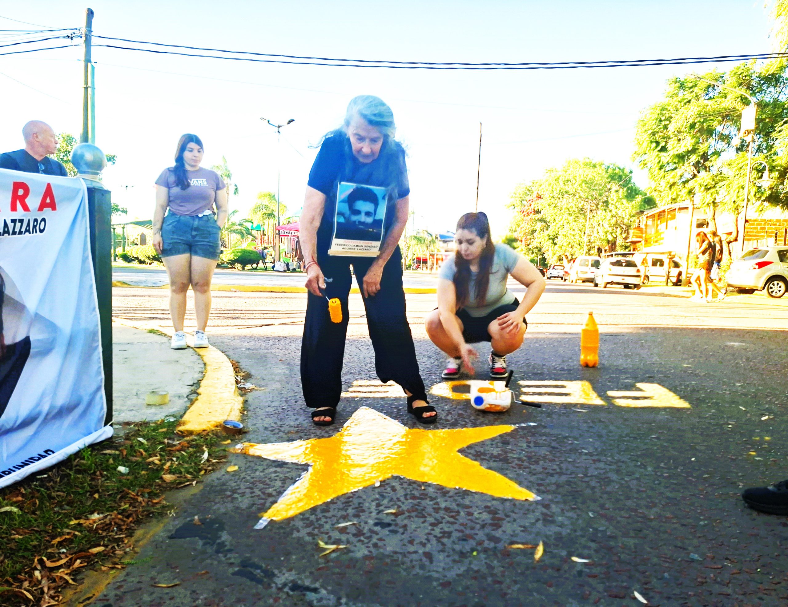Susana pintando la estrella de Federico en el sitio del drama.