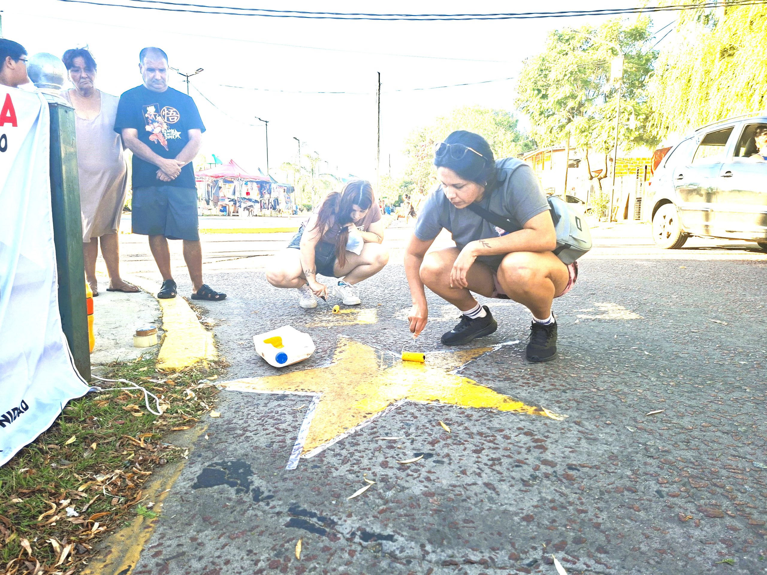 Pintando la estrella de Federico en el sitio del drama.