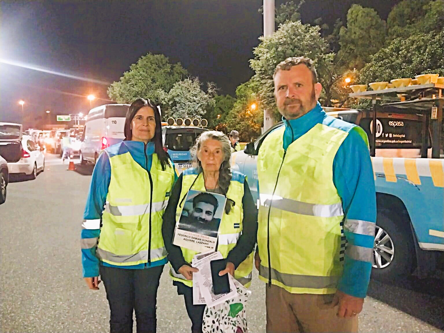 «Esta foto se tomó al finalizar un operativo a la una de la mañana del 9 de marzo», describe Susana Lázzaro la imagen de tapa de la presente crónica, que la muestra con un retrato de su hijo parada entre dos agentes; «la movida empezó a las 20 del 8 de marzo en conmemoración del Día de la Mujer; fue un operativo de alcoholemia, papeles de los automotores y otras cuestiones en el acceso al partido de Tigre rumbo a la Capital Federal; impresiona la cantidad de automovilistas alcoholizados; algunos casos registraban 0,20 o 0,30 y muchos pasaban de 0,50; se les retenía el vehículo, como corresponde».