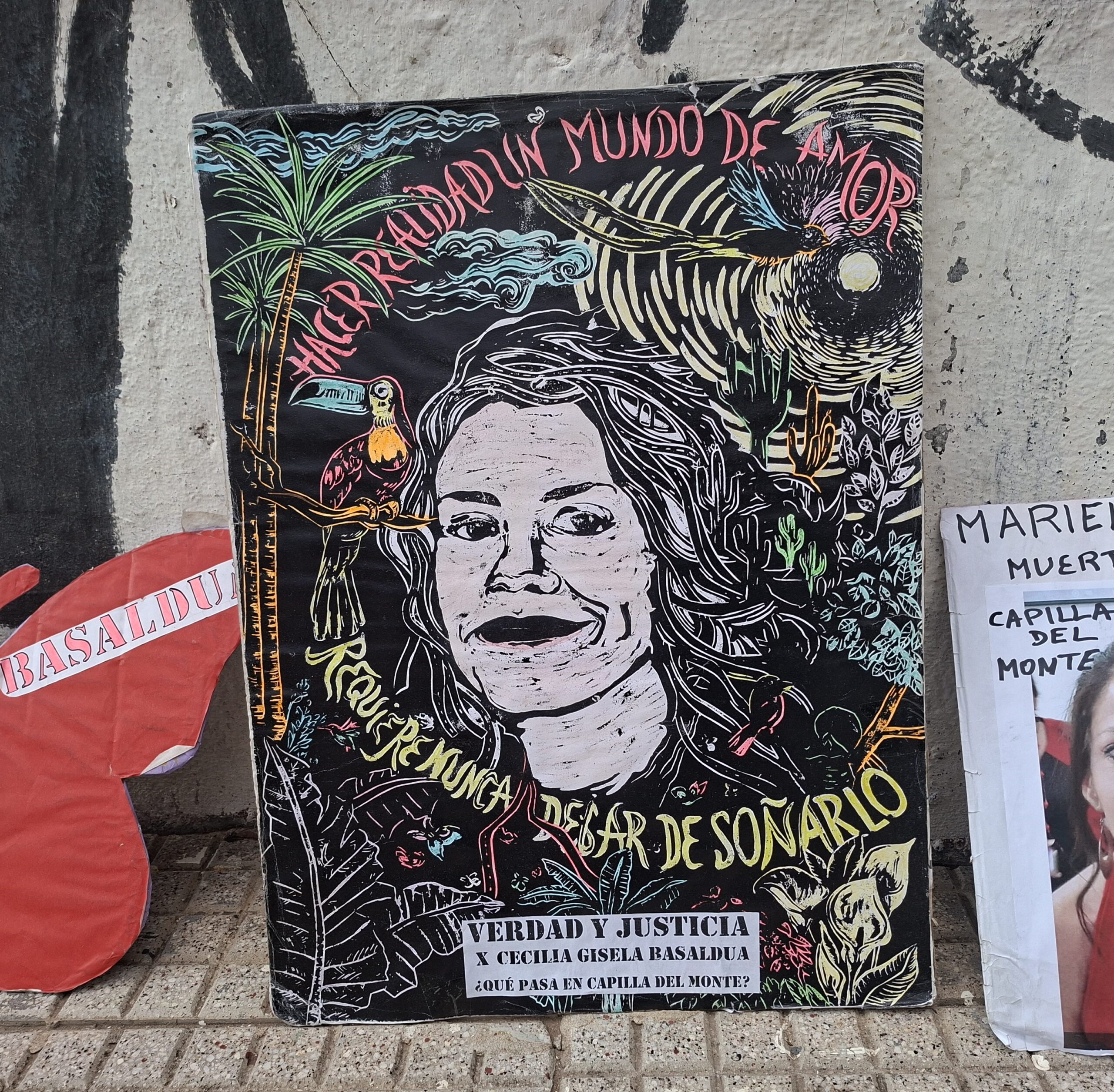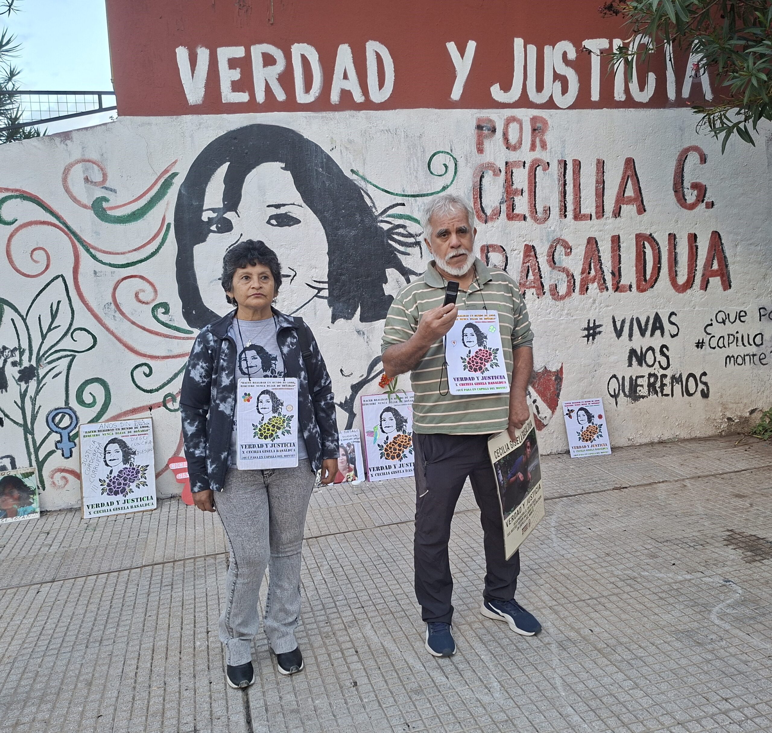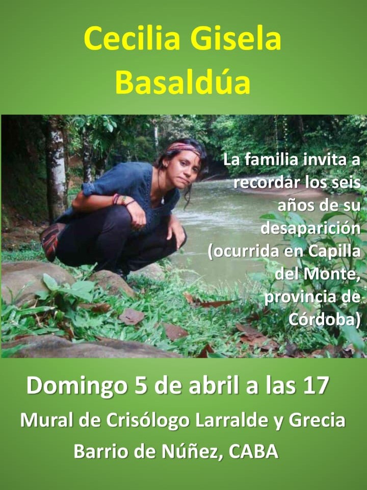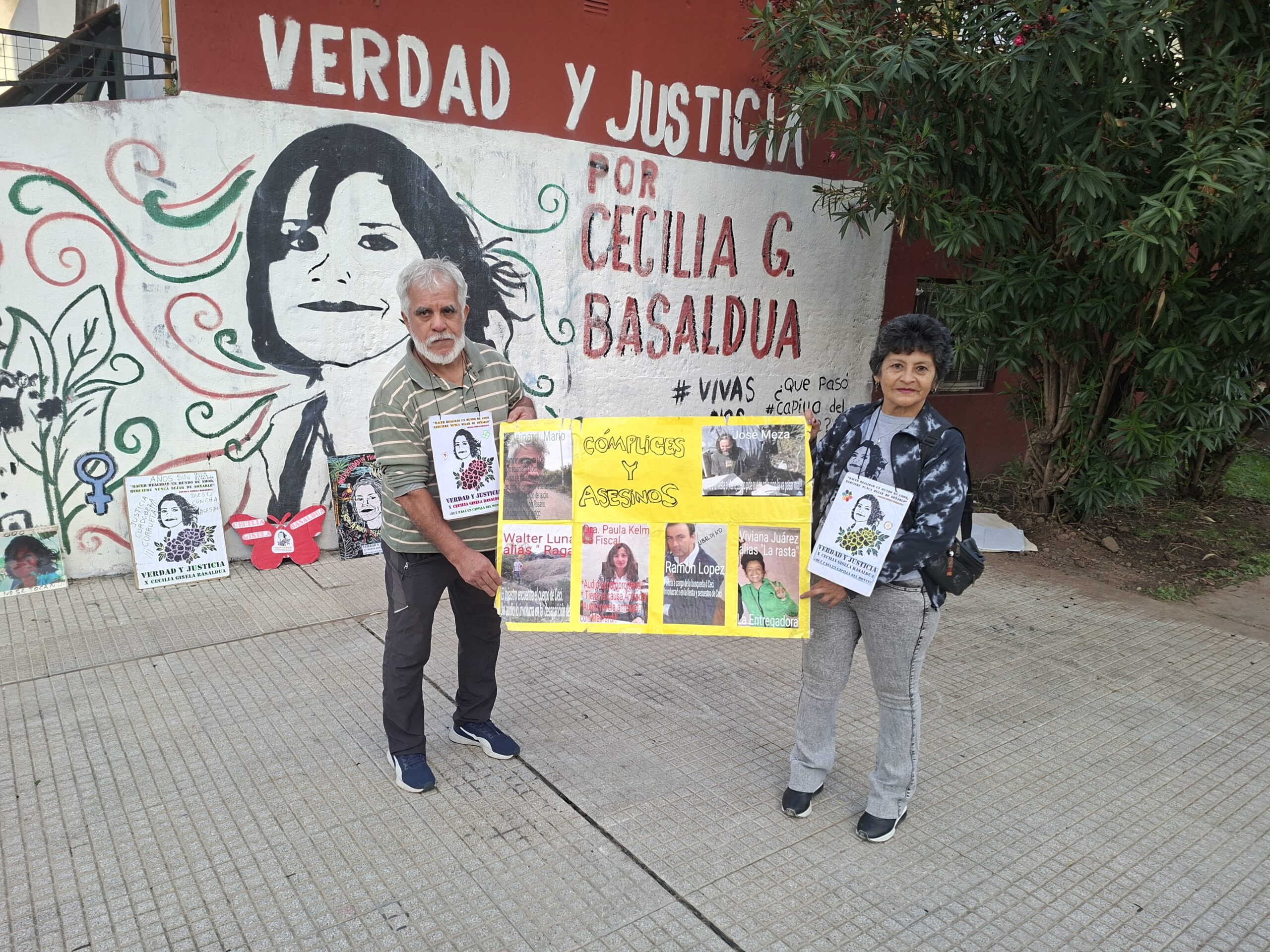 «Quiero que sepan que no se van a salir con la suya», proclama Alberto Daniel Basaldúa sosteniendo un pequeño grabador de audio en la mano derecha; está de pie junto a su esposa Susana Reyes; es el 5 de abril, sexto aniversario del crimen de Cecilia Gisela, hija de ambos; a espaldas del matrimonio se divisa el rostro de la víctima, que protagoniza el mural situado en el barrio porteño de Núñez; «hasta que no estén presos no vamos a parar y si no, que digan quién le hizo esto a Cecilia; ellos saben; ahí hubo un entramado entre Mainardi, Meza, la Policía, la Vivi Rasta…; hubo mucha gente involucrada».