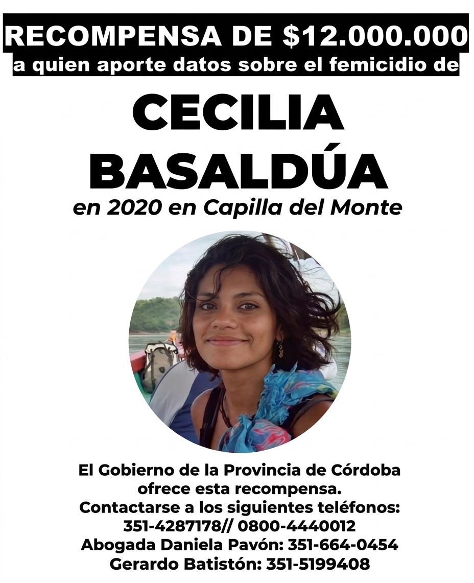 El Gobierno de Córdoba ofrece una recompensa de 12 millones de pesos a quien aporte información veraz. El Ministerio Público Fiscal de la provincia tiene habilitados varios teléfonos para poder recibir los datos (la línea gratuita 0800 4440012 y los números 351 4287178, 3549 42025 y 351 4481016, interno 54081). Interviene en simultáneo, para quien lo requiera, el Programa de Protección a Testigos de la Secretaría de Derechos Humanos de la Nación. La familia Basaldúa brinda en paralelo los contactos de sus abogados: Daniela Pavón (351 6640454) y Gerardo Battistón (351 5199408).